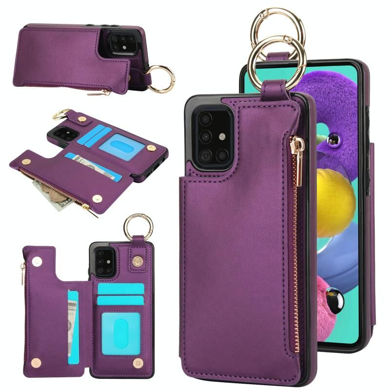 Για Samsung Galaxy A51 4G RFlD Anti-theft Διπλό πόρπη δαχτυλίδι φερμουάρ τηλέφωνο υπόθεση κάρτα (Σκούρο μωβ)