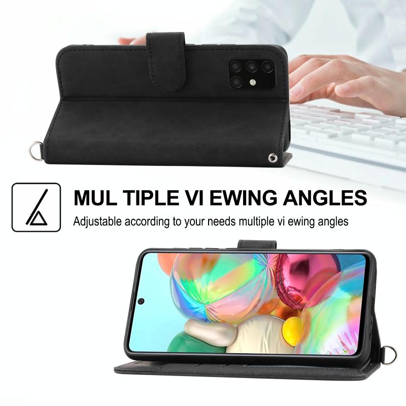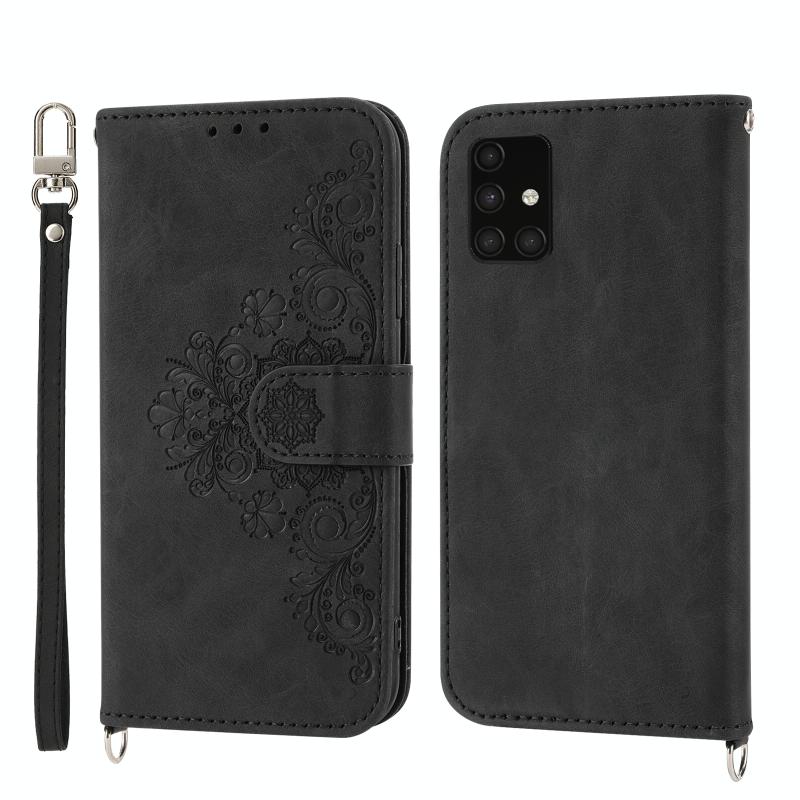 Θήκη τηλεφώνου Samsung Galaxy A51 4G με δερμάτινο πορτοφόλι, ανάγλυφα λουλούδια και αίσθηση δέρματος (Μαύρο)