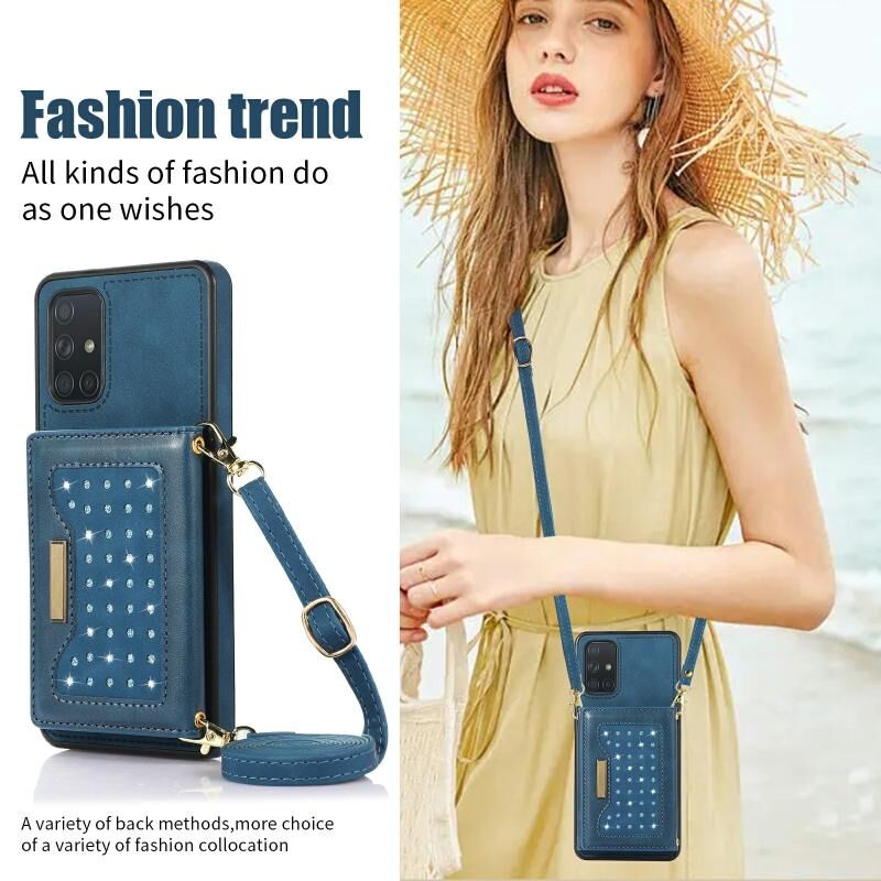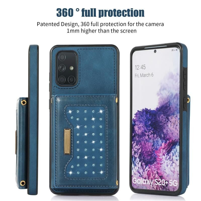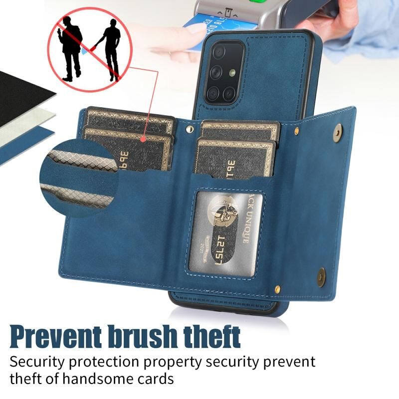 Για Samsung Galaxy A51 4G Τρεις φορές RFID δερμάτινη θήκη τηλεφώνου με κορδόνι (μπλε)