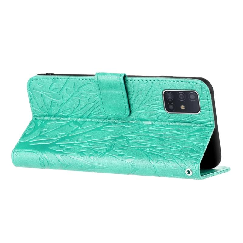 For Samsung Galaxy A51 4G Tree Birds Embossed Pattern Leather Phone Case(Green)