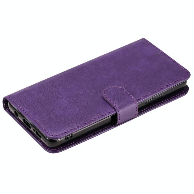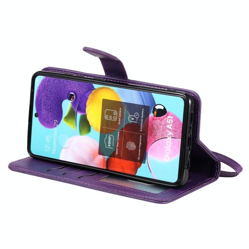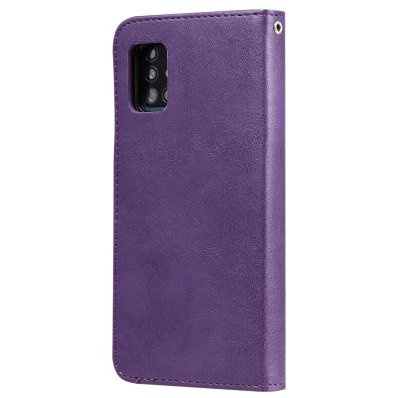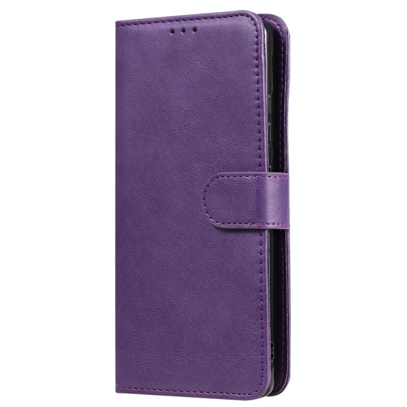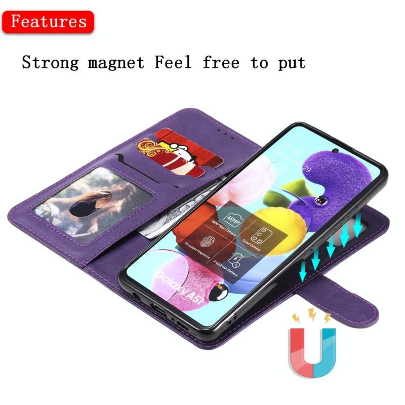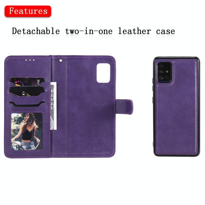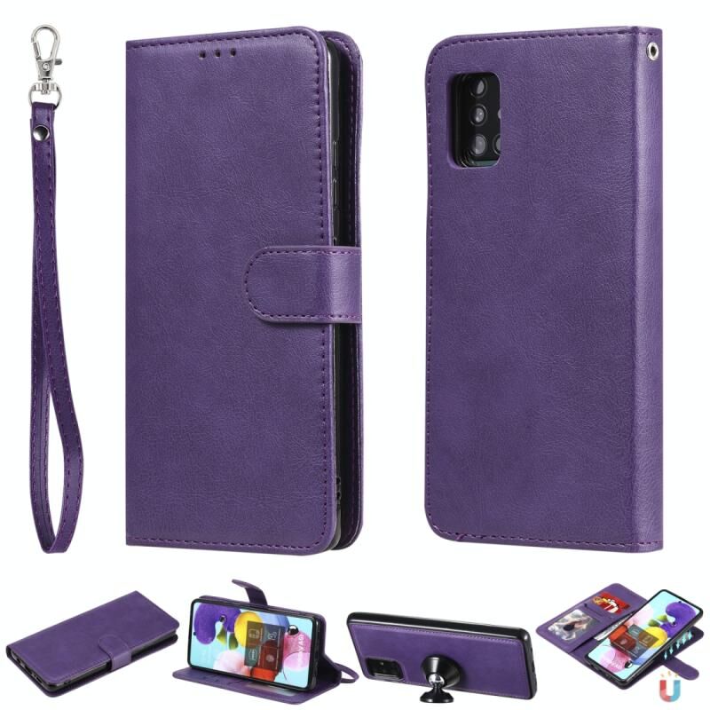 Για Samsung Galaxy A51 5G, θήκη 2 σε 1 από συμπαγές δέρμα PU με αποσπώμενο μονόχρωμο σχέδιο, υποδοχές για κάρτες, μαγνητική βάση, κορνίζα φωτογραφιών, πορτοφόλι και λουρί (Μωβ)