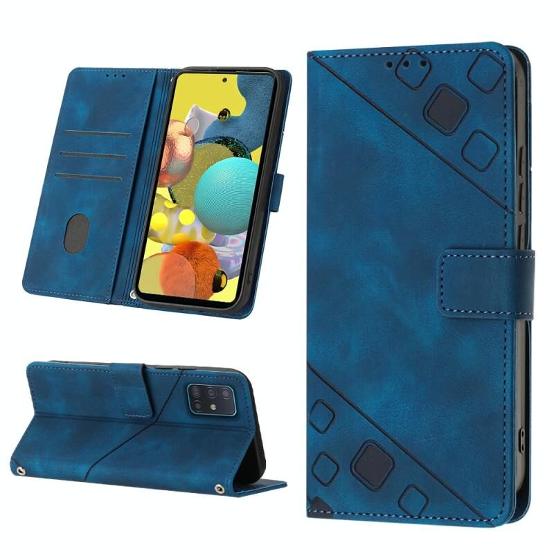 Για Samsung Galaxy A51 5G / A51 JP έκδοση Skin-feel ανάγλυφη δερμάτινη θήκη τηλεφώνου (μπλε)