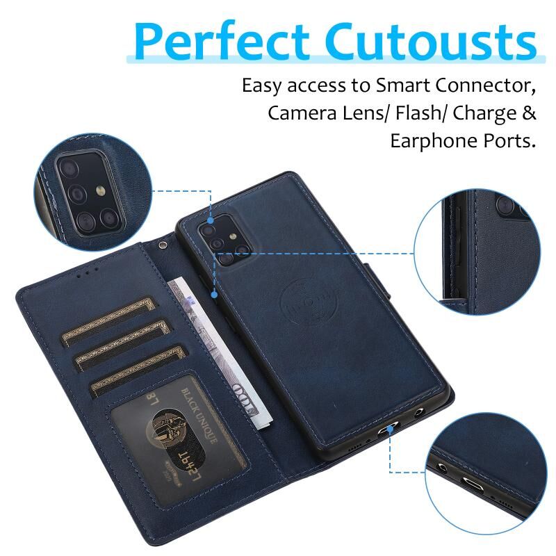 Για Samsung Galaxy A51 5G Calf Texture 2 σε 1 Αποσπώμενο μαγνητικό πίσω κάλυμμα Οριζόντια Flip δερμάτινη θήκη με υποδοχή & υποδοχές για κάρτες & πορτοφόλι & κορνίζα φωτογραφιών (μπλε)