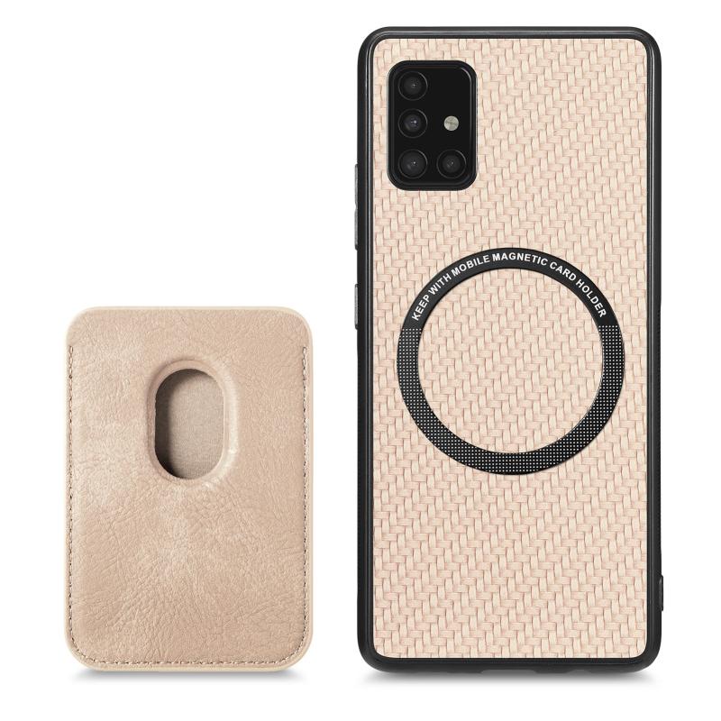 For Samsung Galaxy A51 5G Carbon Fiber Leather Card Magsafe Magnetic Phone Case(Khaki)