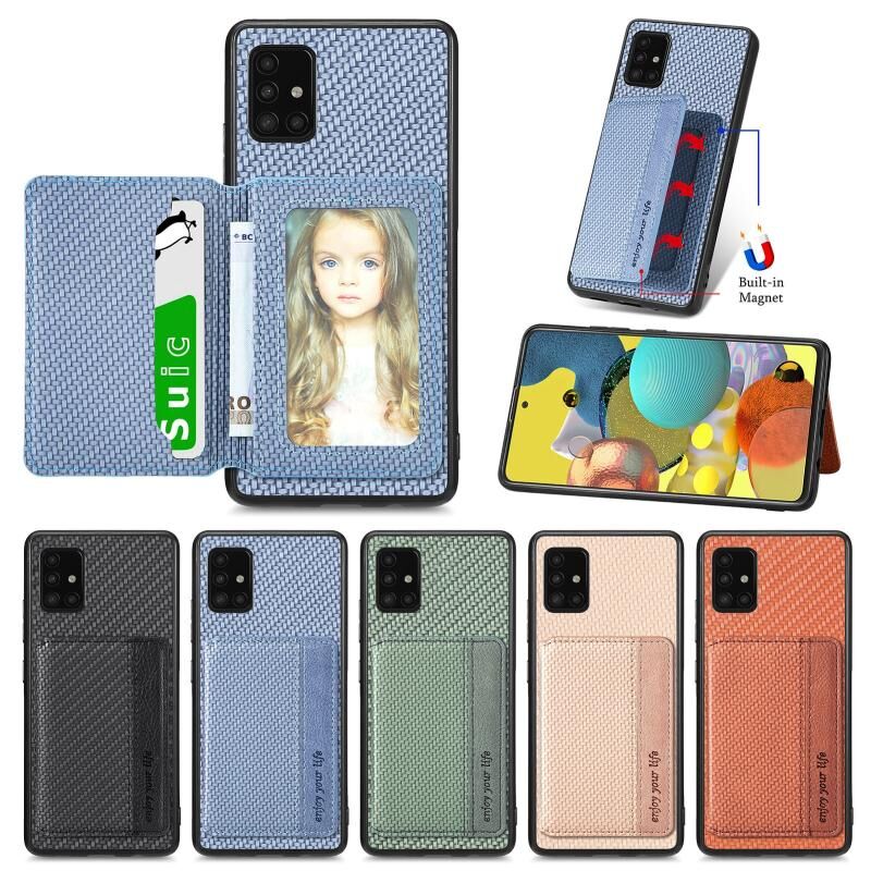 Για Samsung Galaxy A51 5G ινών άνθρακα μαγνητική κάρτα πορτοφόλι τσάντα πορτοφόλι υπόθεση τηλεφώνου (μαύρο)
