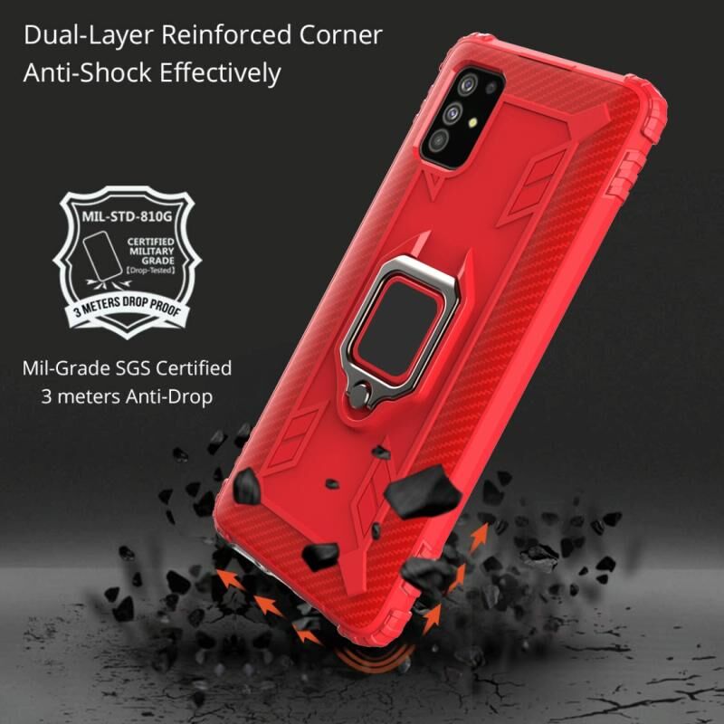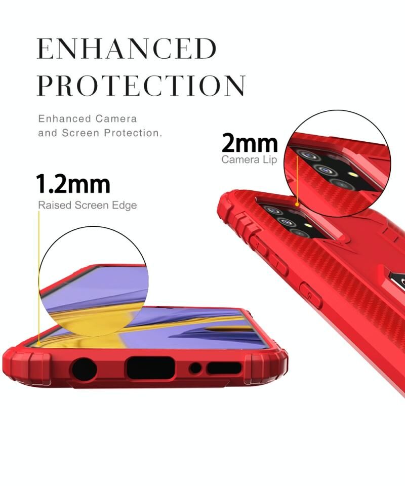 Για Samsung Galaxy A51 (5G) Carbon Fiber Προστατευτική θήκη με 360 μοίρες περιστρεφόμενο δακτύλιο στήριξης (Κόκκινο)