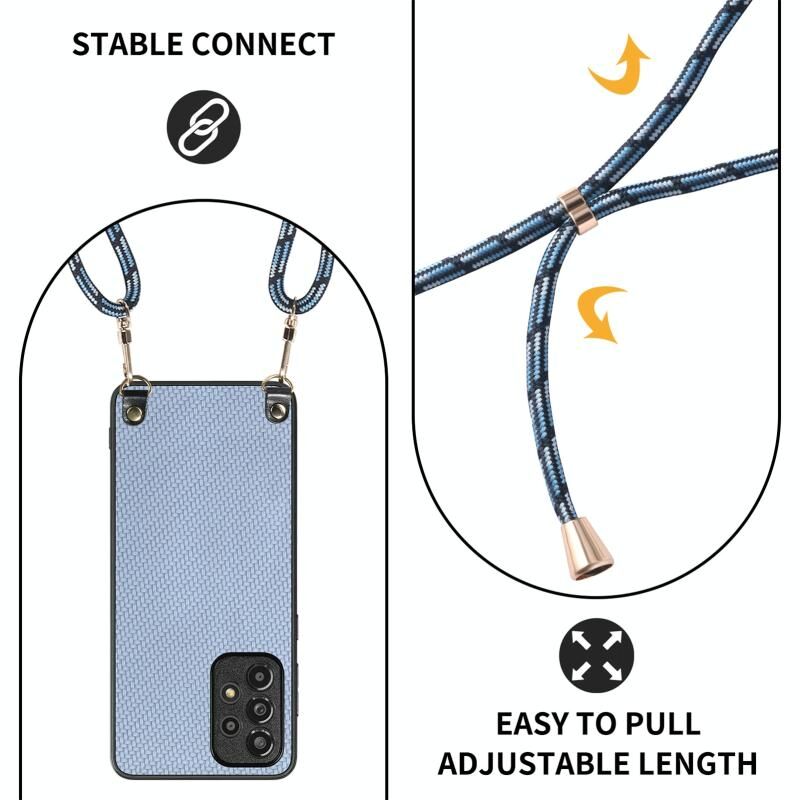 Για Samsung Galaxy A51 5G Carbon Fiber Texture δέρμα πίσω κάλυμμα υπόθεση τηλεφώνου με λουράκι σταυρού (Μπλε)