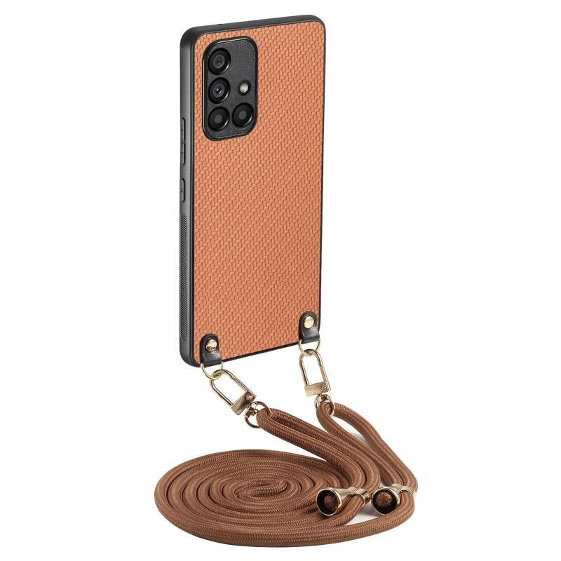 Για Samsung Galaxy A51 5G Carbon Fiber Texture δέρμα πίσω κάλυμμα τηλέφωνο υπόθεση με λουράκι σταυρού (καφέ)