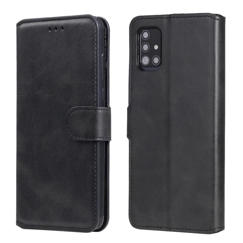 Για Samsung Galaxy A51 5G Κλασική θήκη από δέρμα με υφή μοσχαριού PU + TPU Οριζόντια αναδιπλούμενη δερμάτινη θήκη, με θήκη & υποδοχές για κάρτες & πορτοφόλι (Μαύρο)