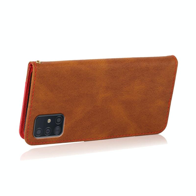 Θήκη τηλεφώνου δερμάτινη με διπλή ραφή για Samsung Galaxy A51 5G (Καφέ Κόκκινο)