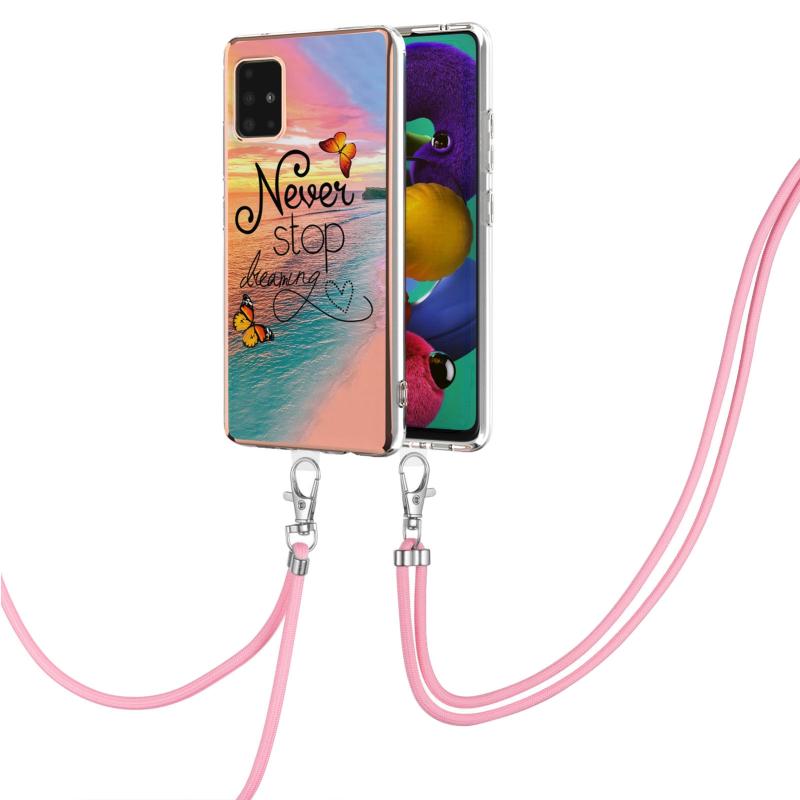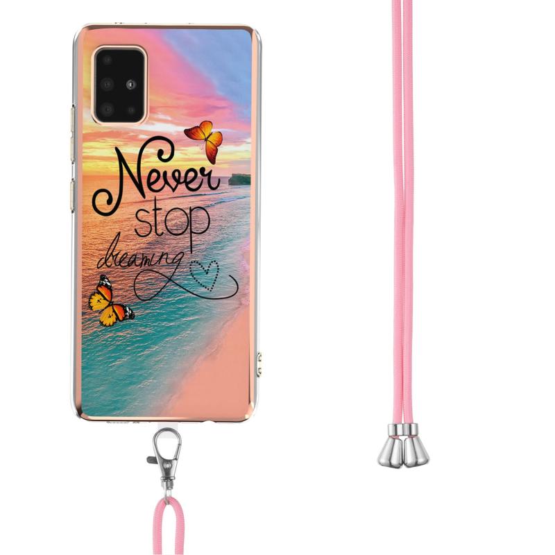 Θήκη προστασίας για Samsung Galaxy A51 5G με σχέδιο επιμετάλλωσης IMD, από TPU ανθεκτικό σε κρούσεις με λουρί λαιμού (Πεταλούδα που κυνηγάει όνειρα)