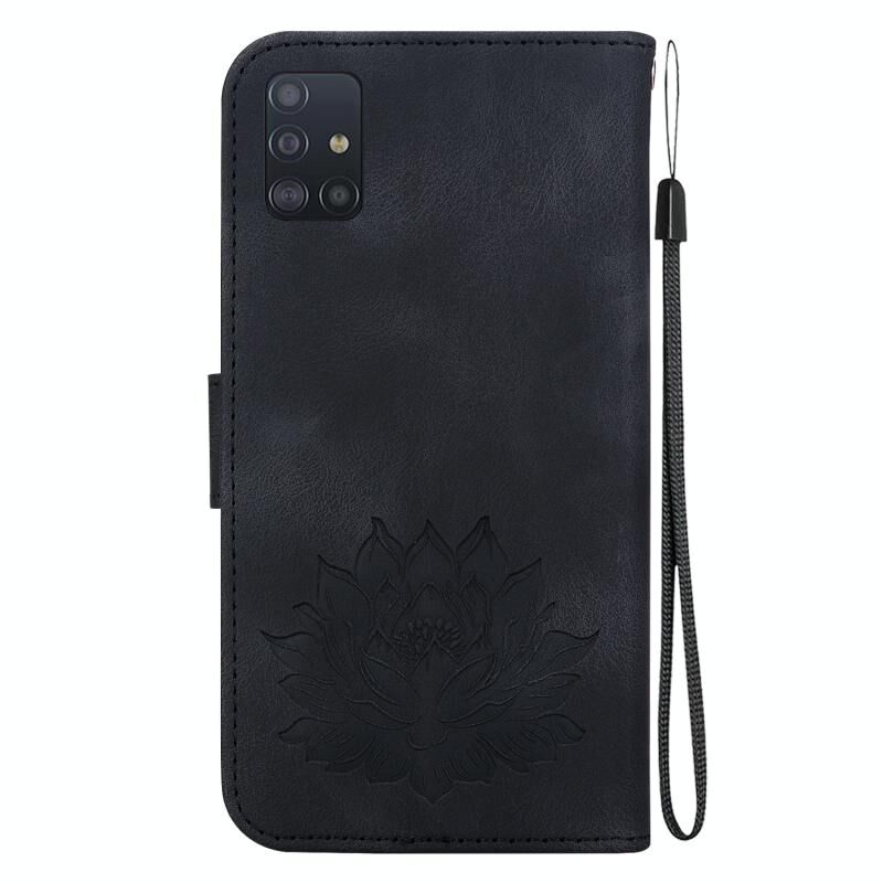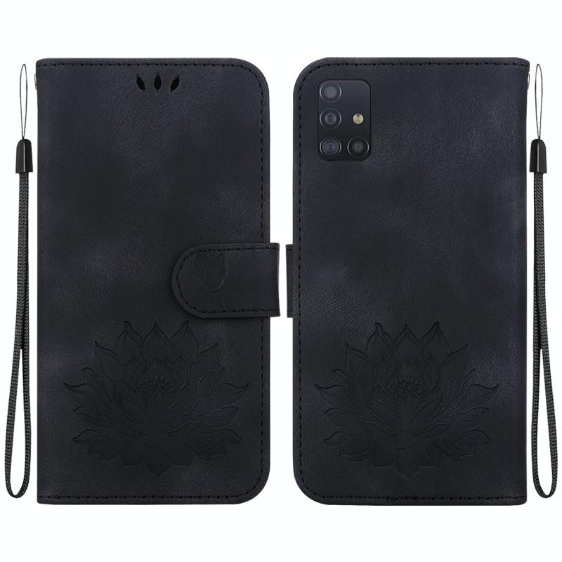 For Samsung Galaxy A51 5G Lotus Embossed Leather Phone Case(Black)