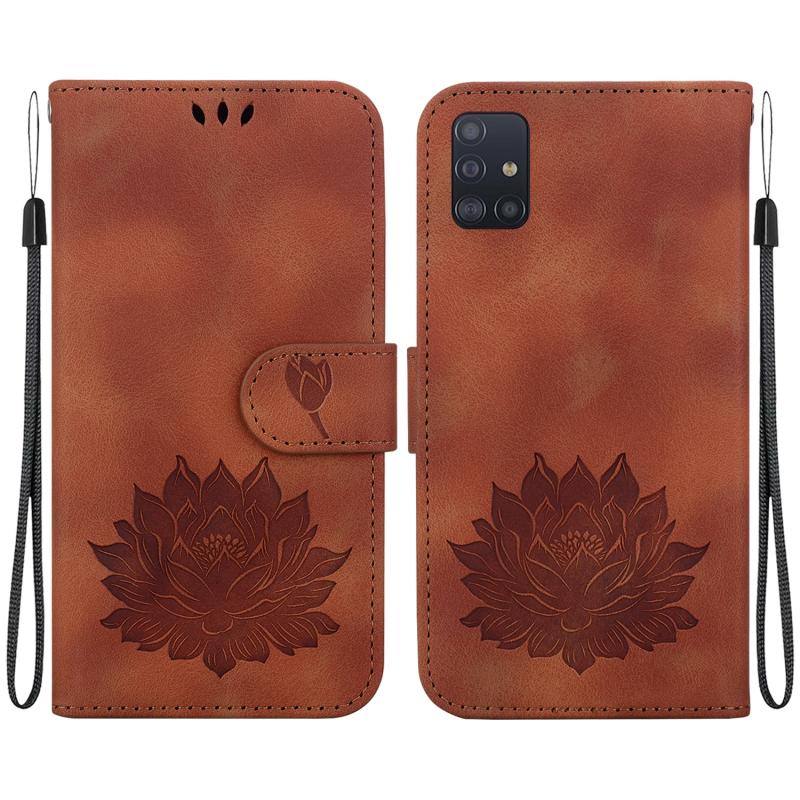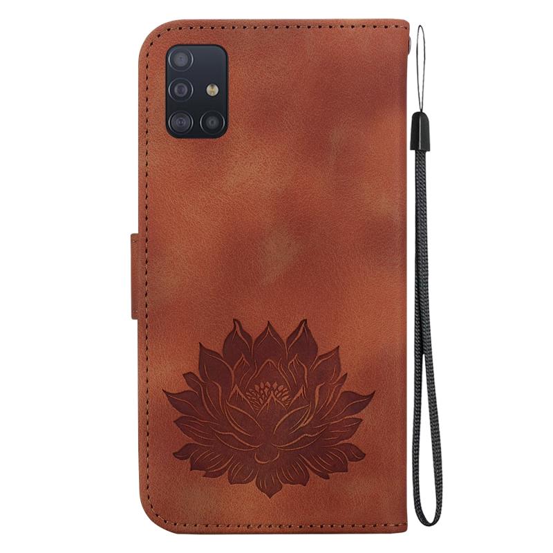 For Samsung Galaxy A51 5G Lotus Embossed Leather Phone Case(Brown)