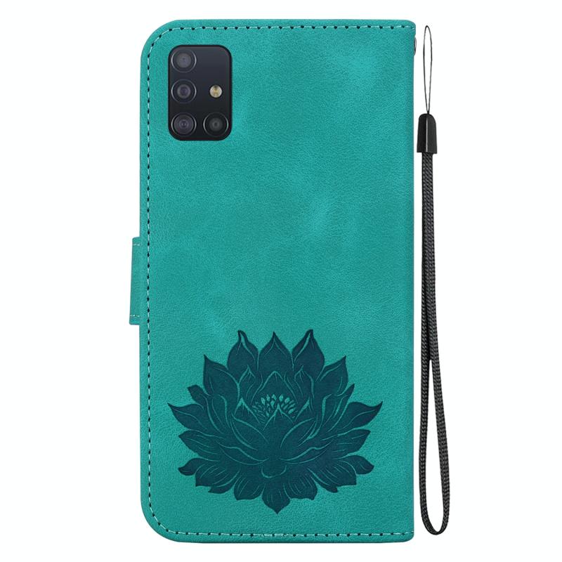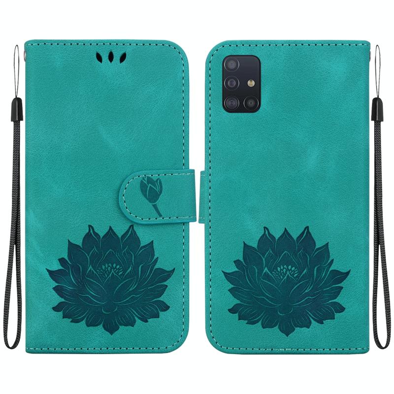 For Samsung Galaxy A51 5G Lotus Embossed Leather Phone Case(Green)