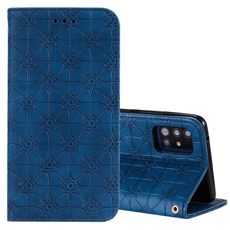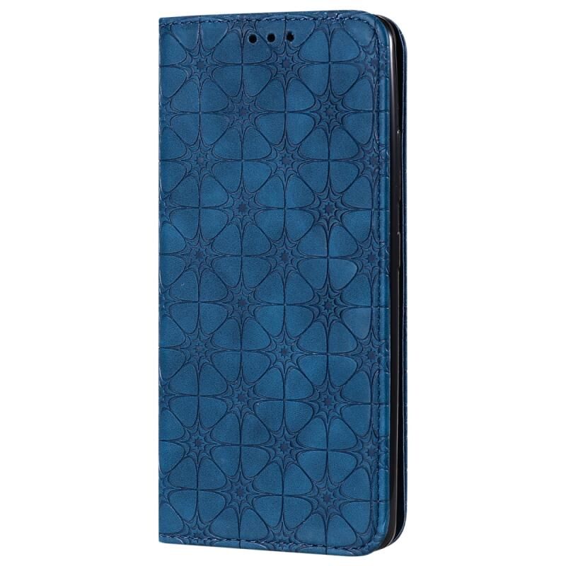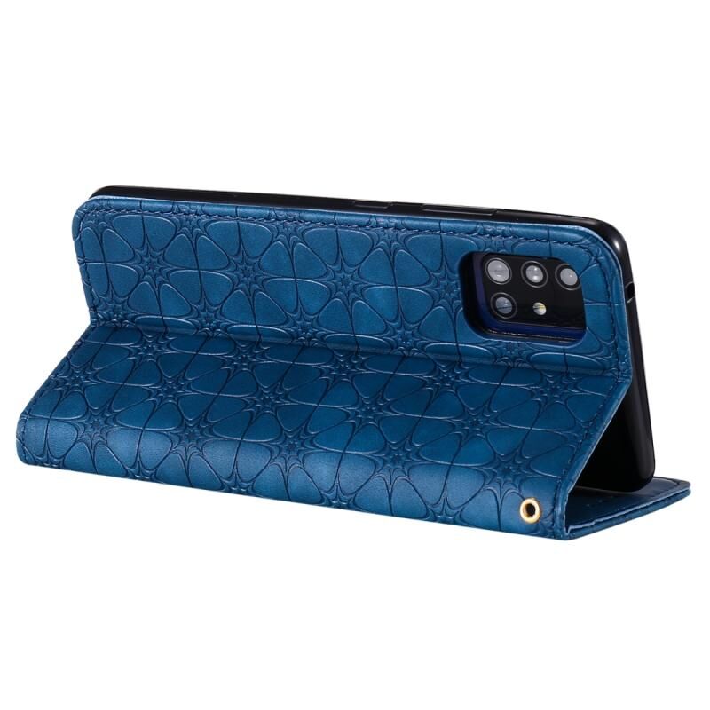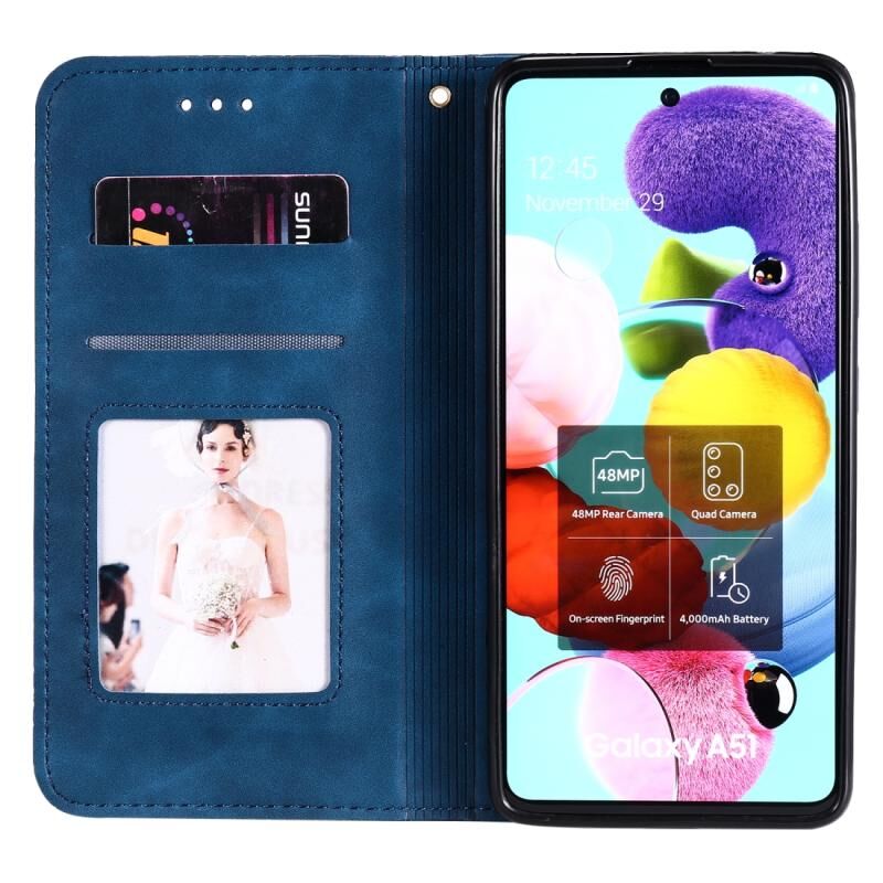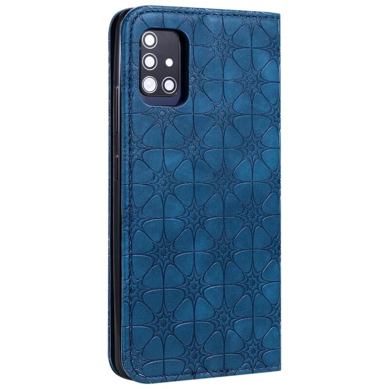 Θήκη Samsung Galaxy A51 5G Δερμάτινη Μαγνητική Οριζόντια Flip με ανάγλυφο σχέδιο Λουλουδιών, Θήκη με Στήριξη & Θήκες Καρτών (Σκούρο μπλε)