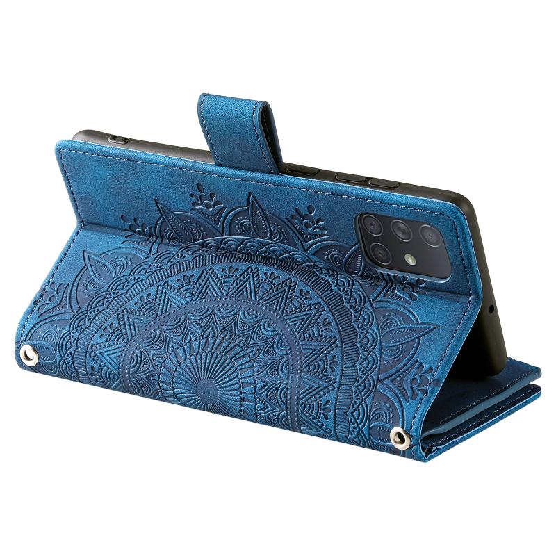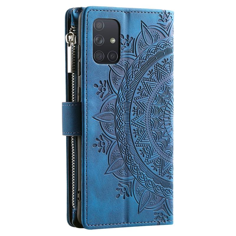 For Samsung Galaxy A51 5G Multi-Card Totem Zipper Leather Phone Case(Blue)