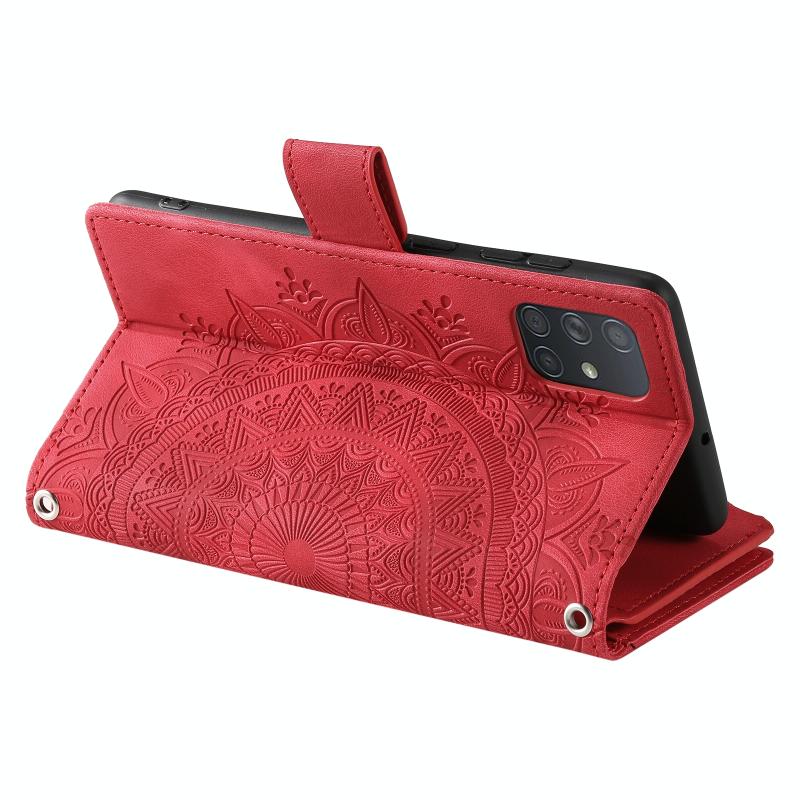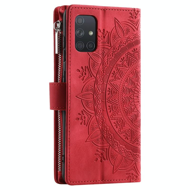 For Samsung Galaxy A51 5G Multi-Card Totem Zipper Leather Phone Case(Red)