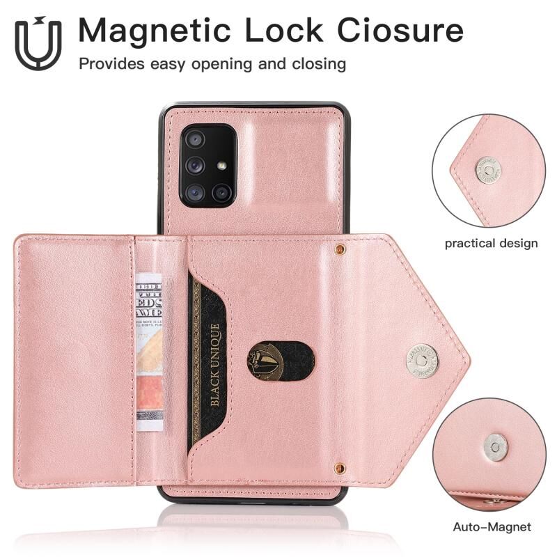 Για Samsung Galaxy A51 5G Πολυλειτουργική Cross-body Card Bag TPU+PU Back Cover Case με θήκη & υποδοχή κάρτας & πορτοφόλι (Rose Gold)