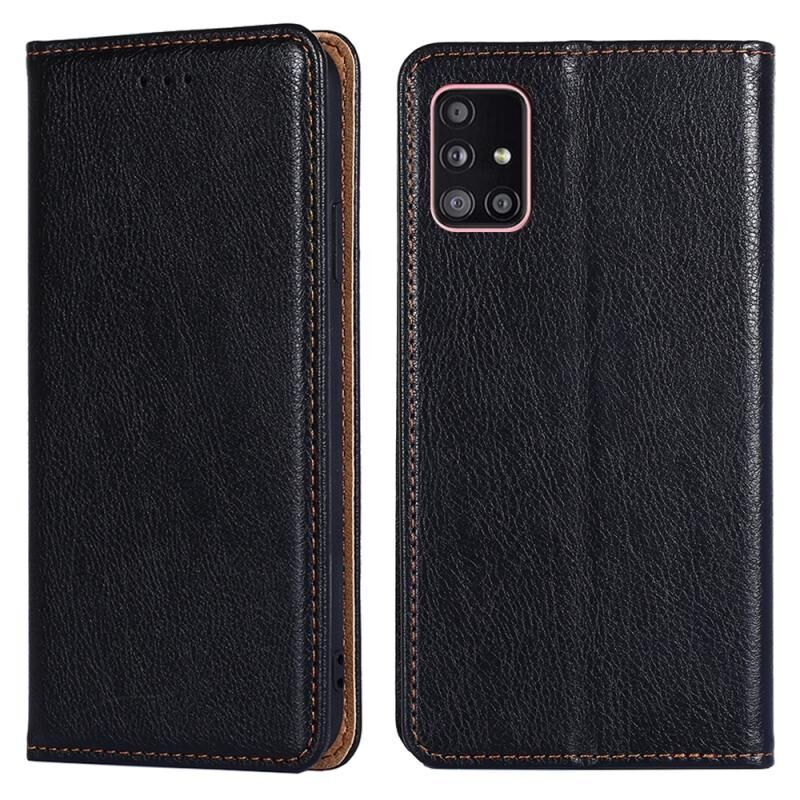 Για Samsung Galaxy A51 5G PU + TPU γυαλιστερό λάδι στερεό χρώμα μαγνητική οριζόντια Flip δερμάτινη θήκη με υποδοχή & υποδοχή για κάρτες & πορτοφόλι (μαύρο)