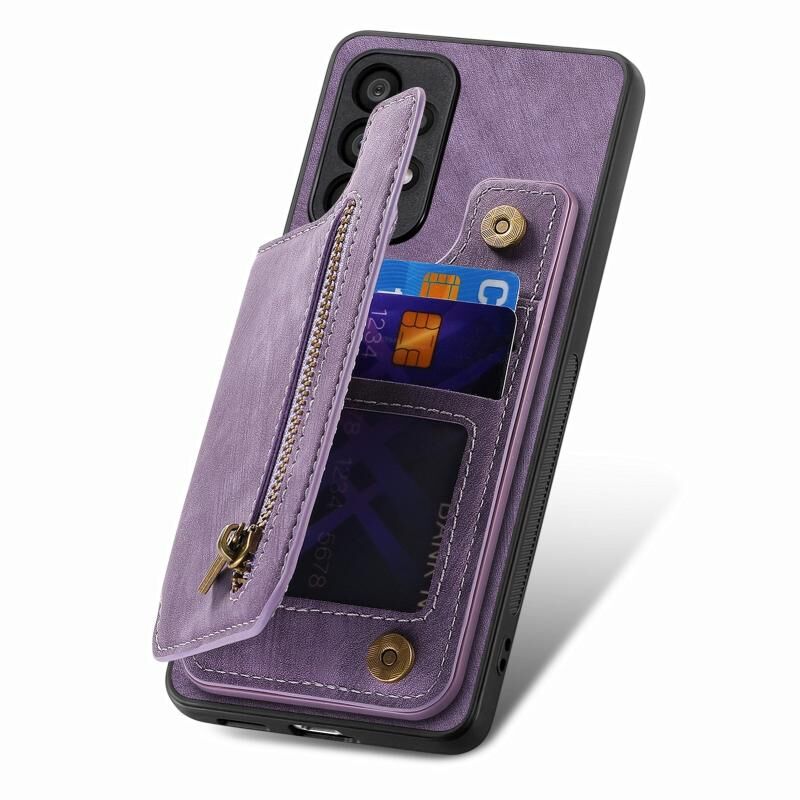 Για Samsung Galaxy A51 5G Ρετρό δέρμα φερμουάρ πορτοφόλι πίσω θήκη τηλεφώνου (μωβ)