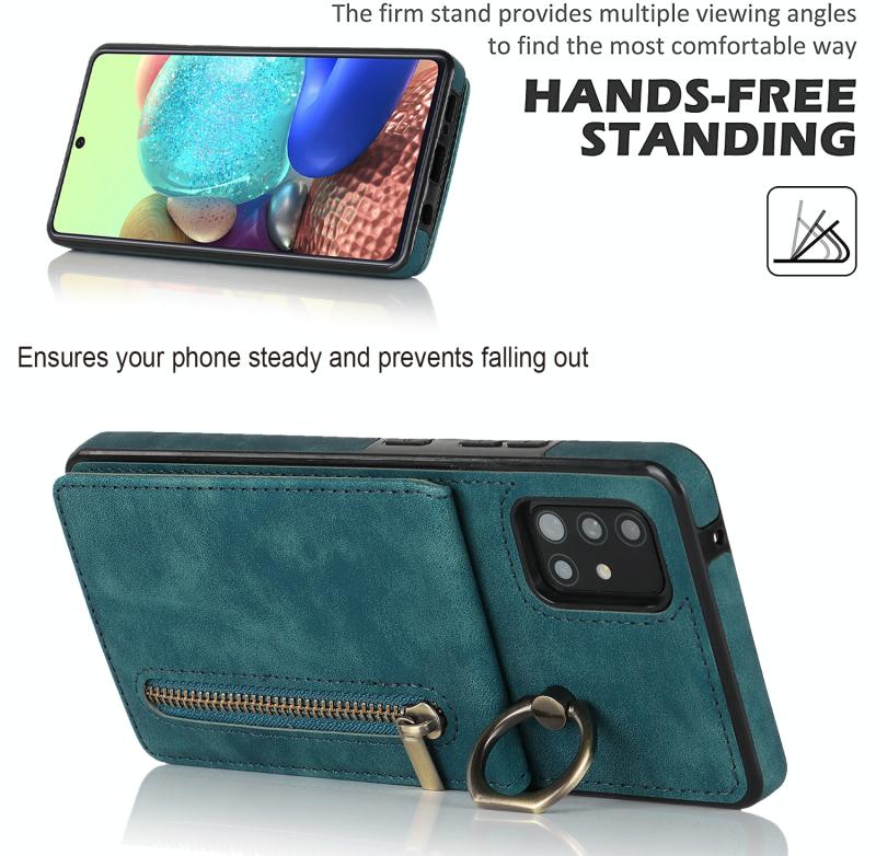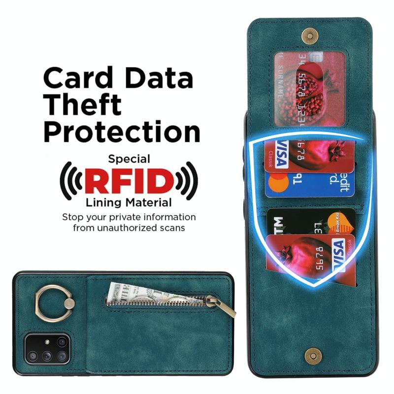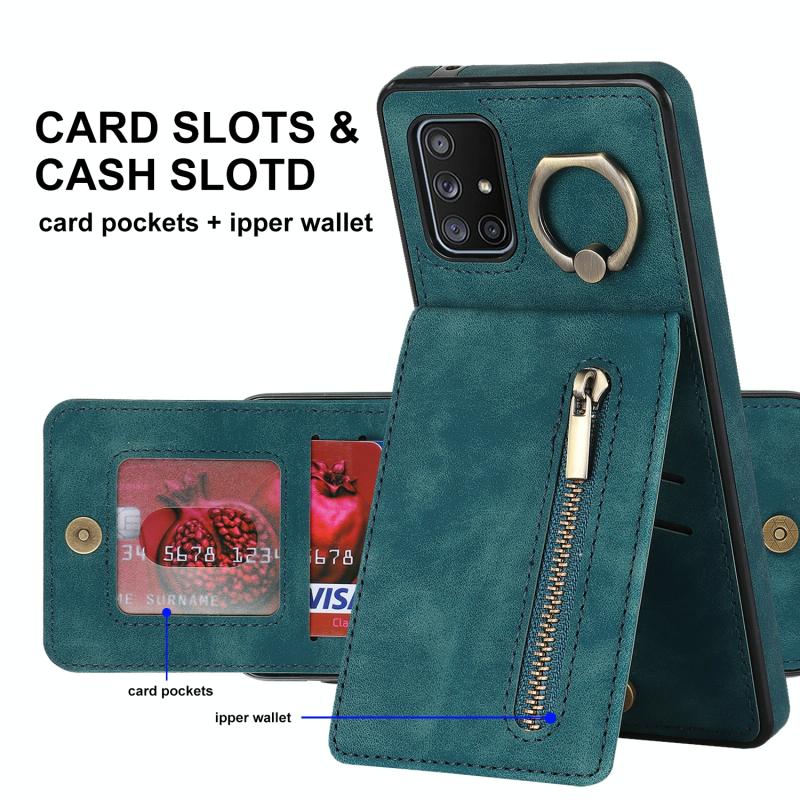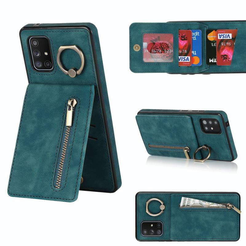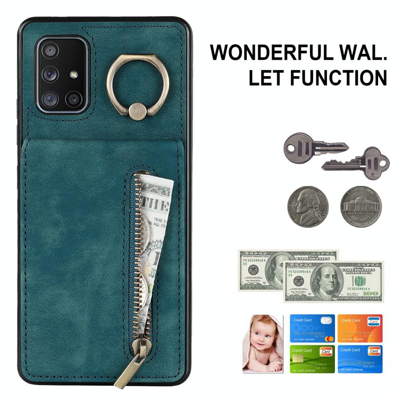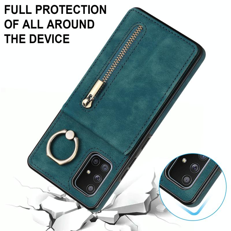 Θήκη κινητού τηλεφώνου Samsung Galaxy A51 5G με ρετρό δακτύλιο και φερμουάρ, θήκη καρτών RFID (Μπλε)