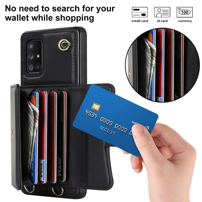 Για Samsung Galaxy A51 5G RFID Slot κάρτα δερμάτινη θήκη τηλεφώνου με μακρύ κορδόνι (Μαύρο)