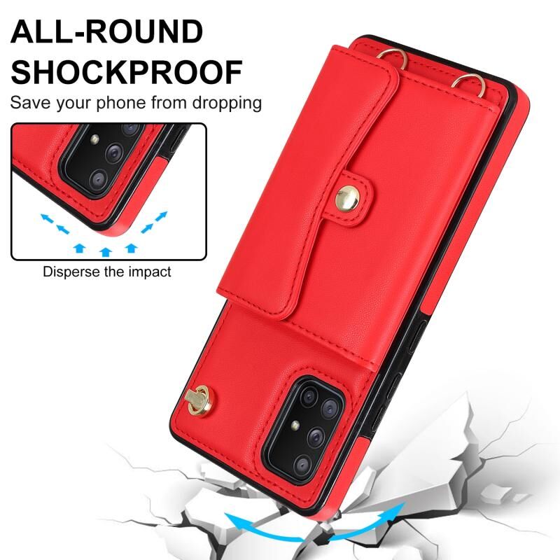 Για Samsung Galaxy A51 5G RFID Slot κάρτα δερμάτινη θήκη τηλεφώνου με μακρύ κορδόνι (Κόκκινο)