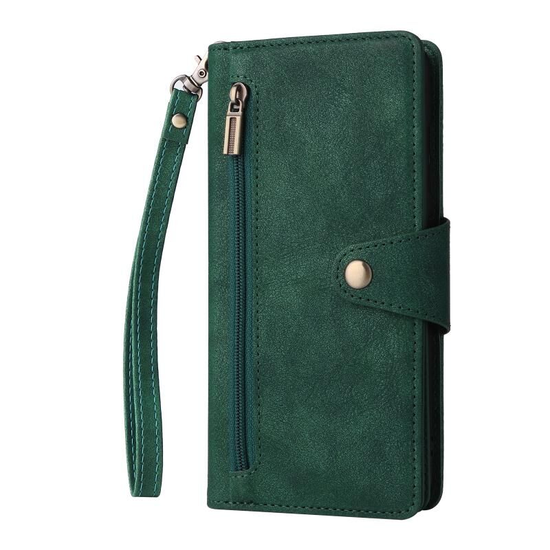 Για Samsung Galaxy A51 5G Rivet πόρπη 9 κάρτες τρεις φορές δερμάτινη θήκη τηλεφώνου (πράσινο)