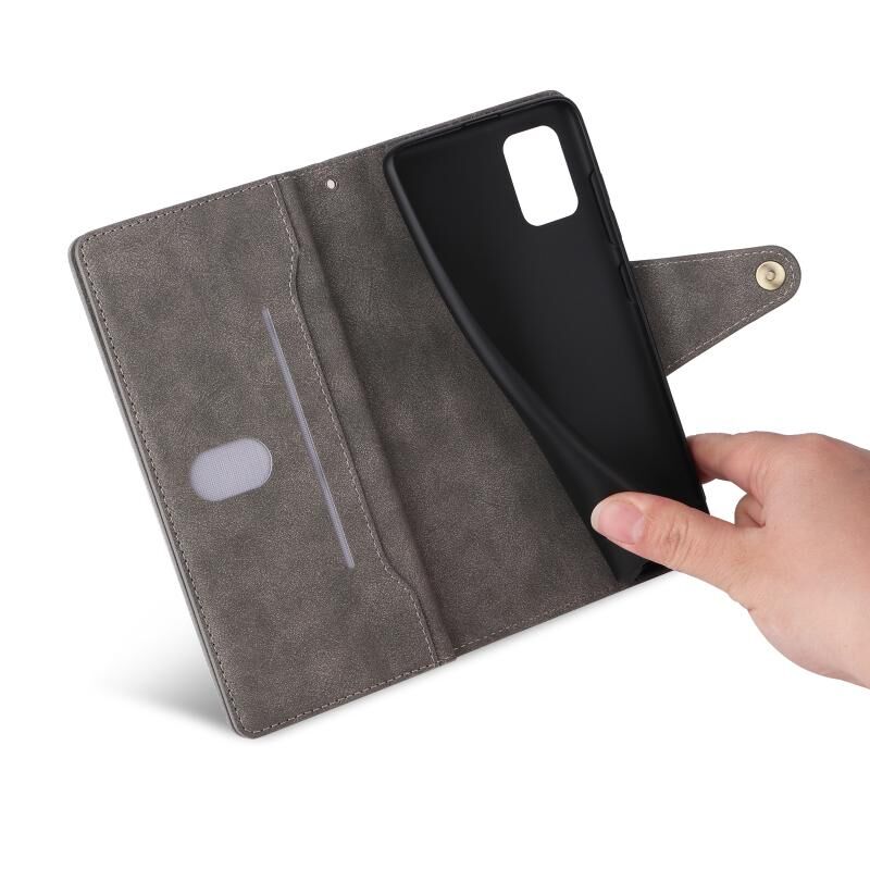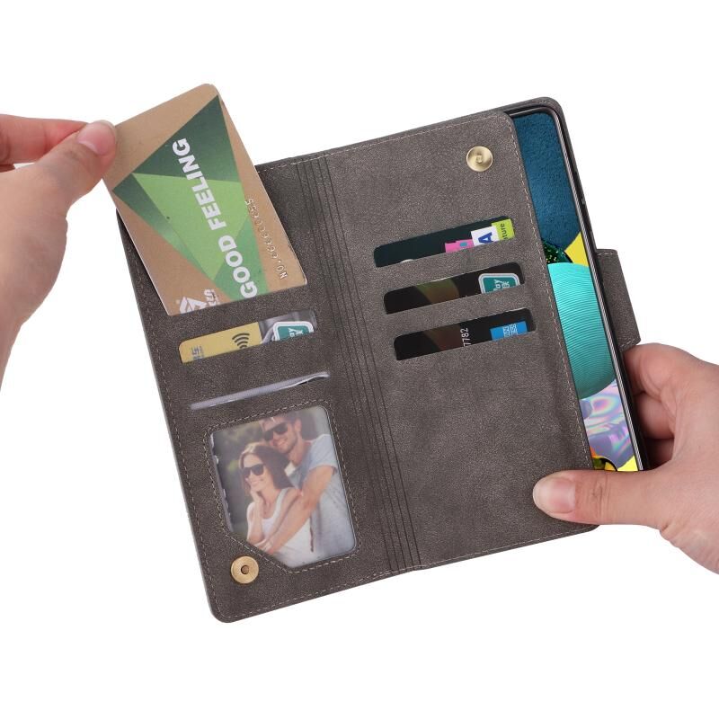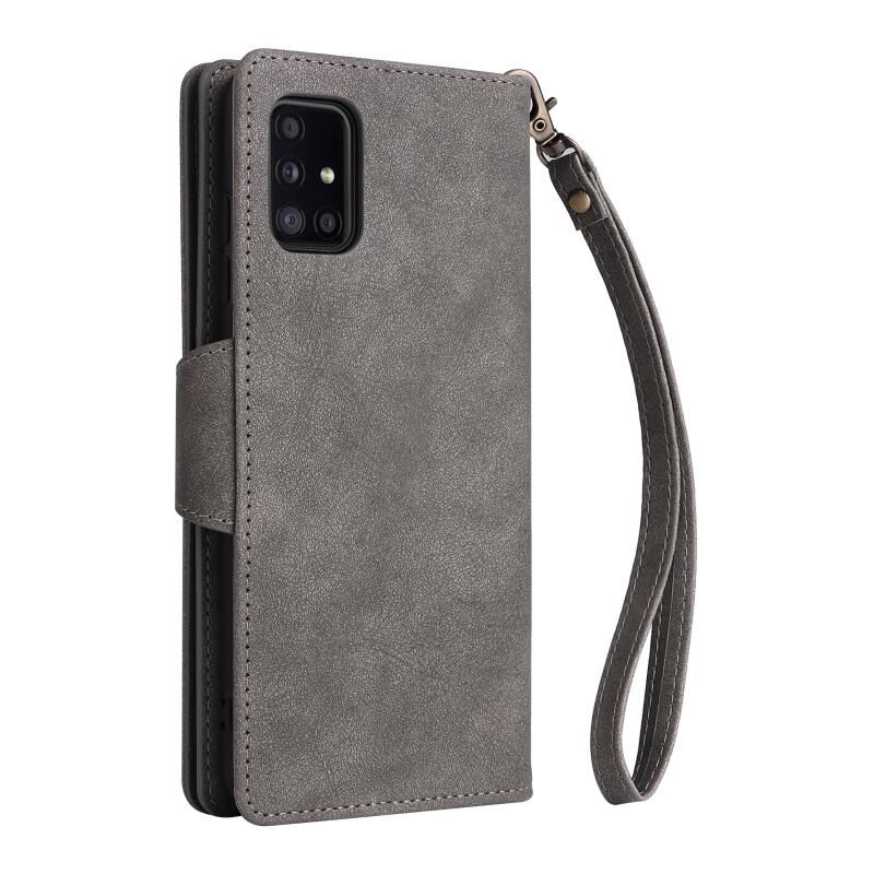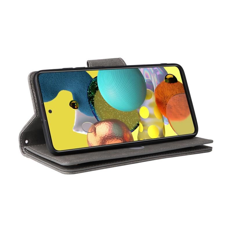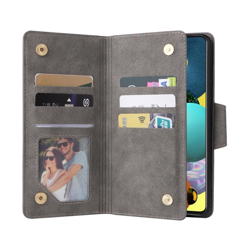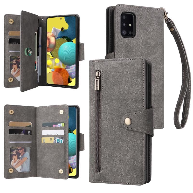 Για Samsung Galaxy A51 5G Rivet πόρπη 9 κάρτες τρεις φορές δερμάτινη θήκη τηλεφώνου (γκρι)
