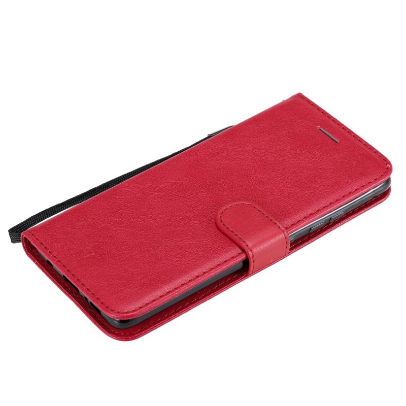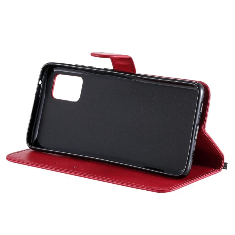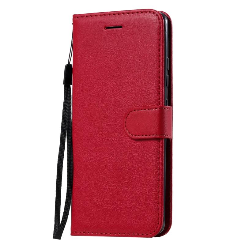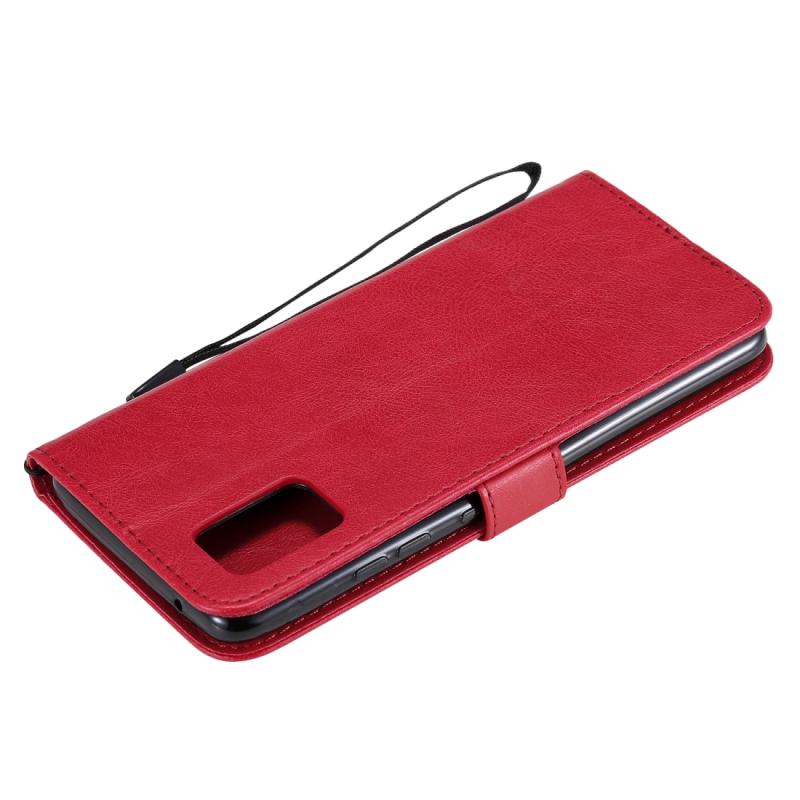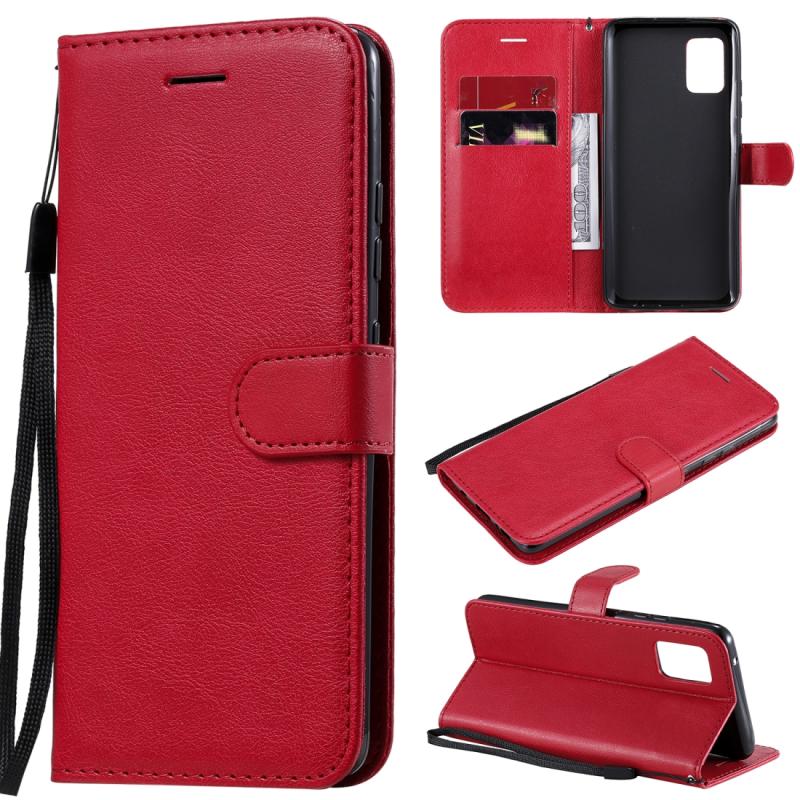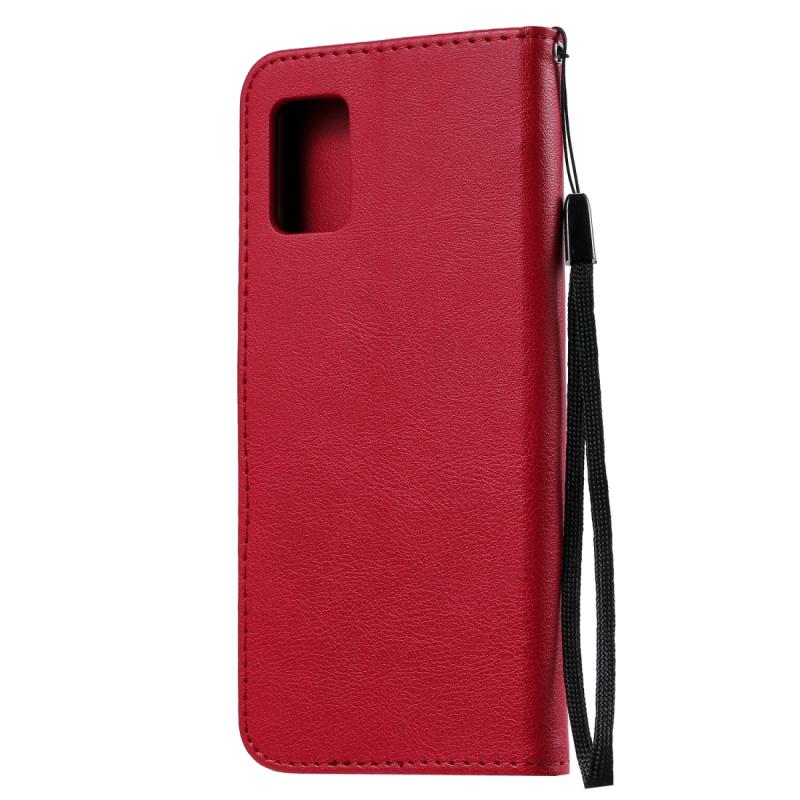 Θήκη προστασίας Samsung Galaxy A51 5G, οριζόντια, αναδιπλούμενη, από δέρμα σε μονόχρωμο ροζ χρυσό, με βάση, θήκες καρτών, πορτοφόλι, κορνίζα φωτογραφιών και κορδόνι. (Κόκκινο)