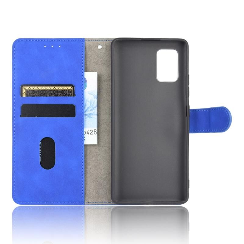 Για Samsung Galaxy A51 5G Solid Color Skin Feel μαγνητική πόρπη οριζόντια Flip μοσχάρι υφή PU δέρμα υπόθεση με κάτοχο & υποδοχές για κάρτες & πορτοφόλι (μπλε)