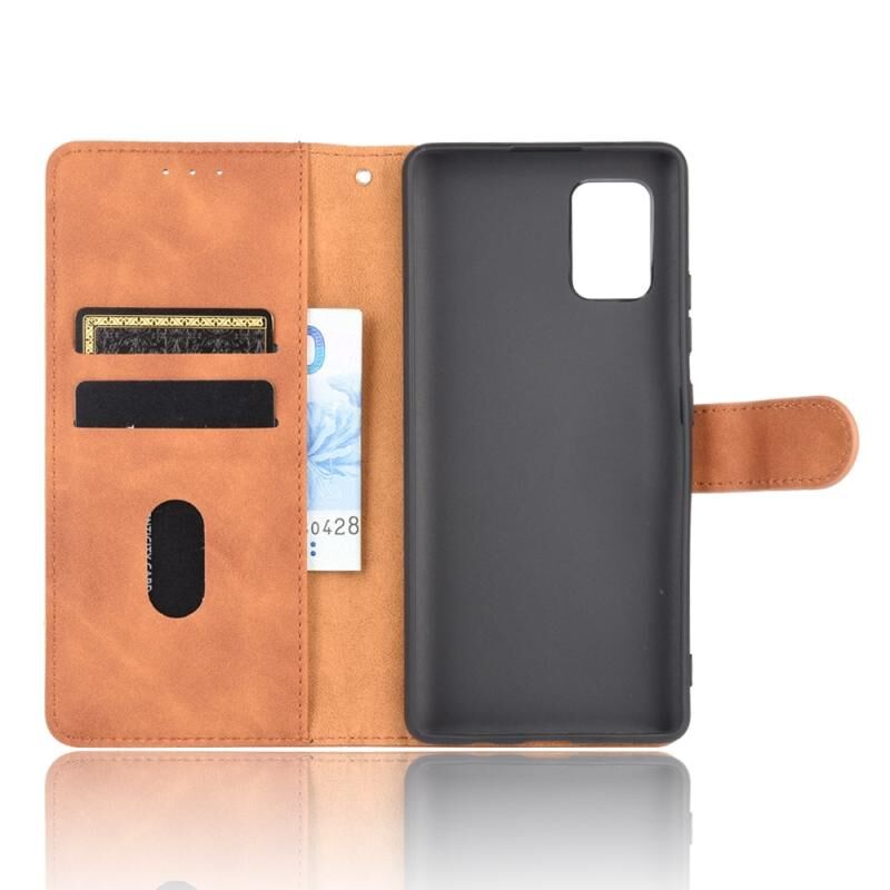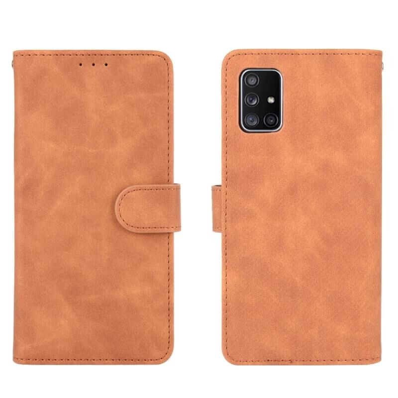 Για Samsung Galaxy A51 5G Solid Color Skin Feel μαγνητική πόρπη οριζόντια Flip μοσχάρι υφή PU δέρμα υπόθεση με κάτοχο & υποδοχές για κάρτες & πορτοφόλι (Καφέ)