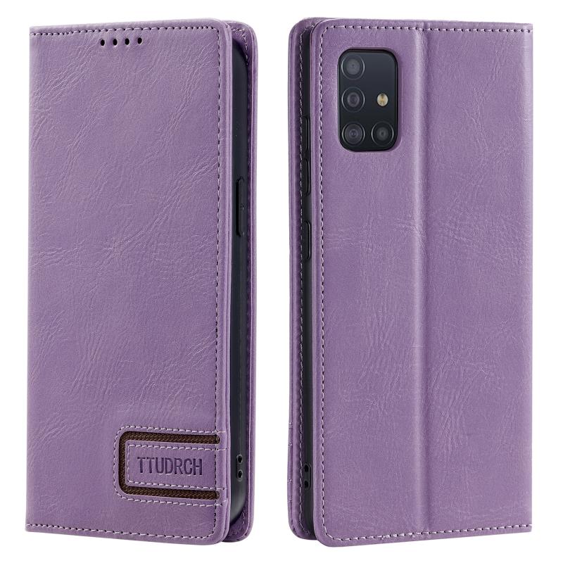 For Samsung Galaxy A51 5G TTUDRCH RFID Retro Texture Magnetic Leather Phone Case(Purple)