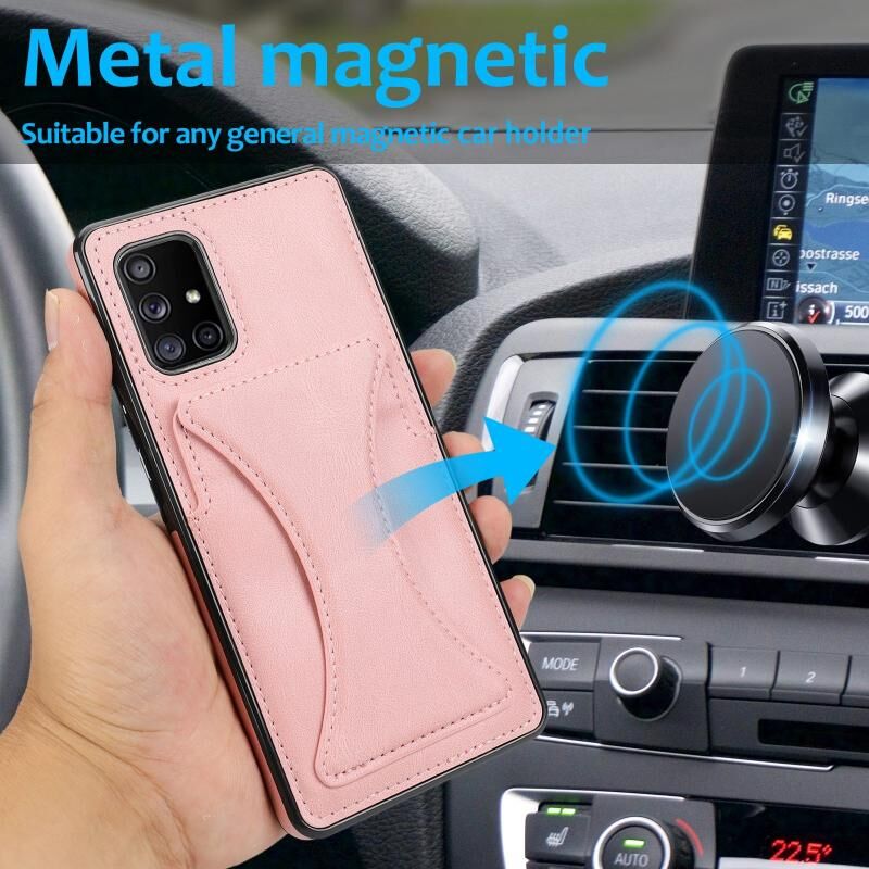 Θήκη προστασίας Samsung Galaxy A51 5G, εξαιρετικά λεπτή, αντικραδασμική με βάση στήριξης & μεταλλική μαγνητική λειτουργία (Χρυσορόδινο)