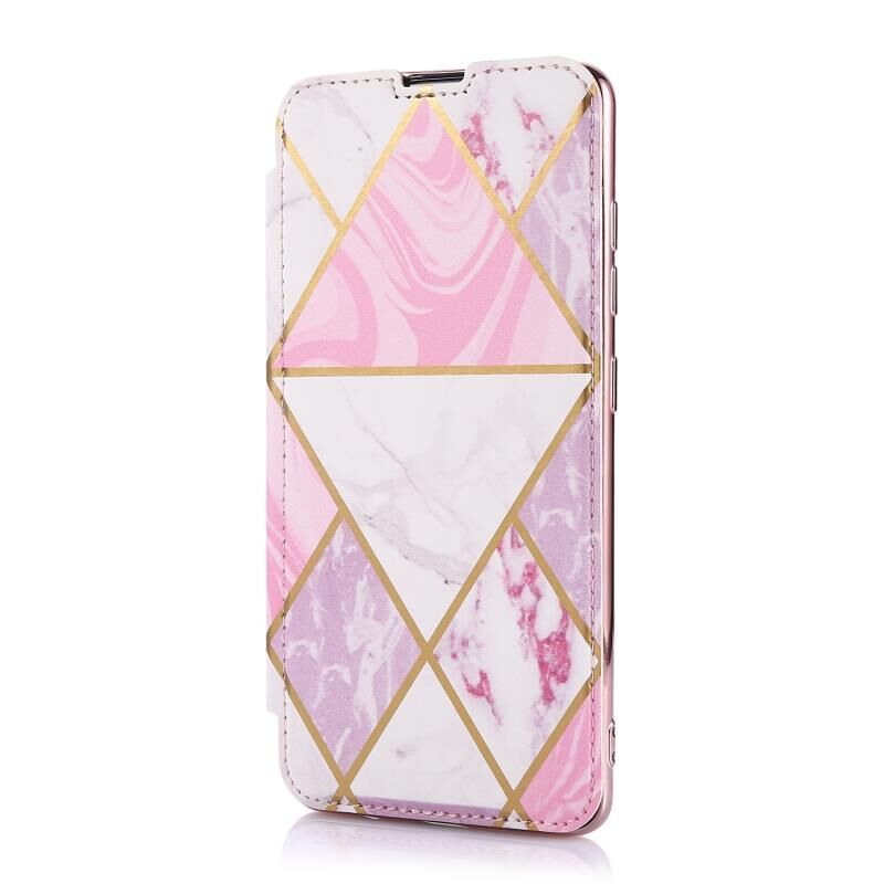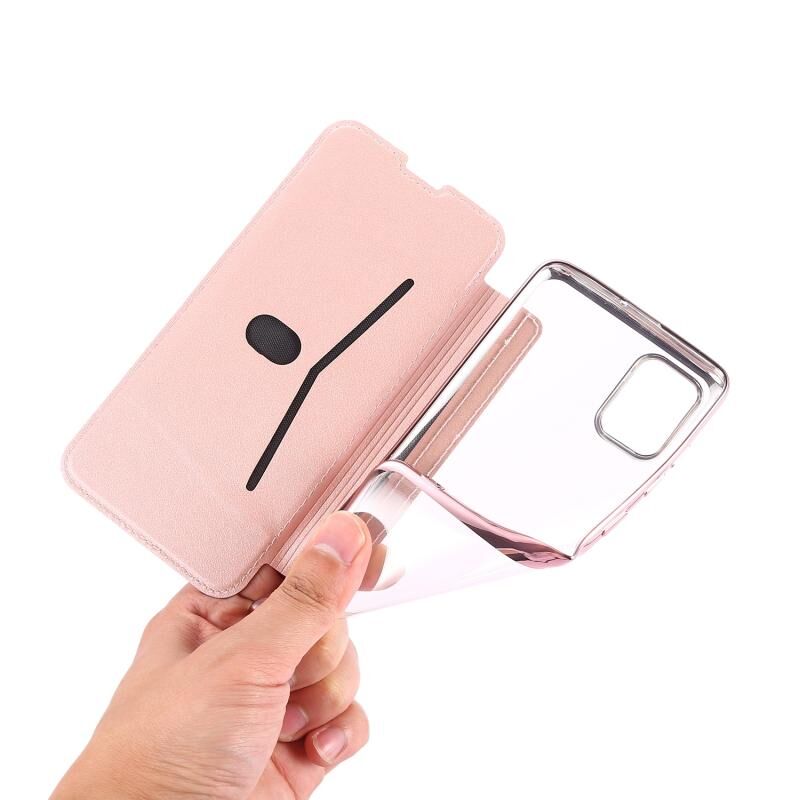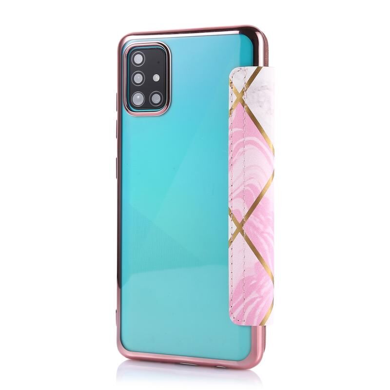 Θήκη δέρματος οριζόντιας αναδίπλωσης PU + TPU με επιμετάλλωση μπρούτζου για Samsung Galaxy A51 με βάση & υποδοχή κάρτας (Μαύρο)