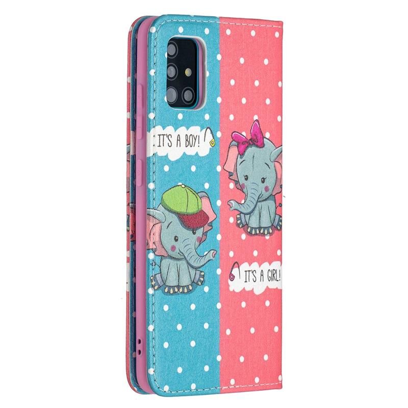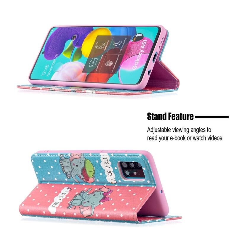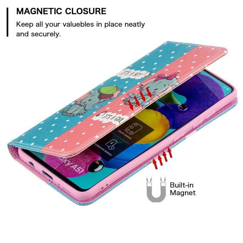 Θήκη Samsung Galaxy A51, πολύχρωμη με σχέδιο, αόρατη μαγνητική οριζόντια από δερματίνη PU με βάση & θήκες για κάρτες & πορτοφόλι (Ελέφαντας)