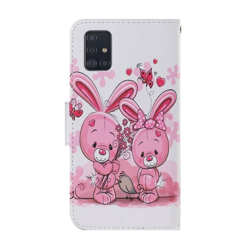 Θήκη Samsung Galaxy A51, Δερμάτινη PU με Οριζόντιο Άνοιγμα, Πολύχρωμο Σχέδιο, με Θήκη, Θήκες Καρτών, Πορτοφόλι & Λουρί (Χαριτωμένο Κουνελάκι)