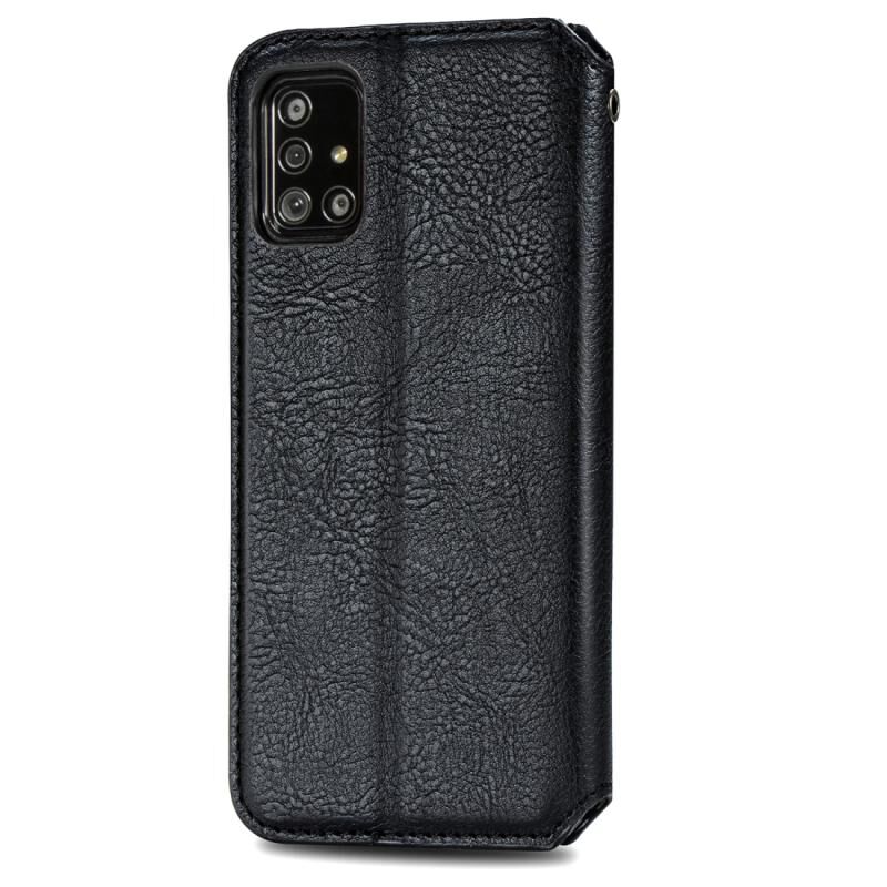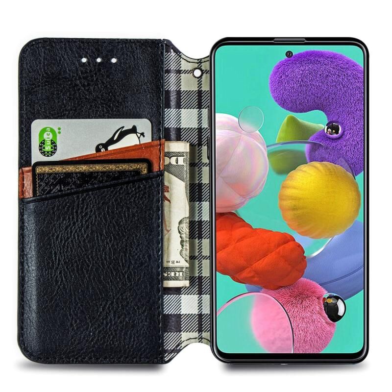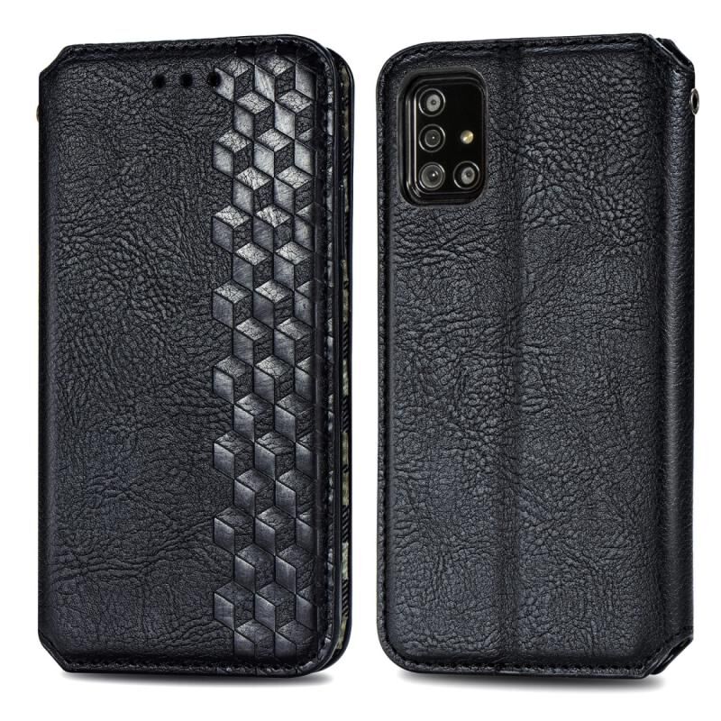 Για το Samsung Galaxy A51 Cubic Grid Pressed Horizontal Flip Μαγνητική δερμάτινη θήκη με θήκη για κάρτες & υποδοχές & πορτοφόλι (Μαύρο)