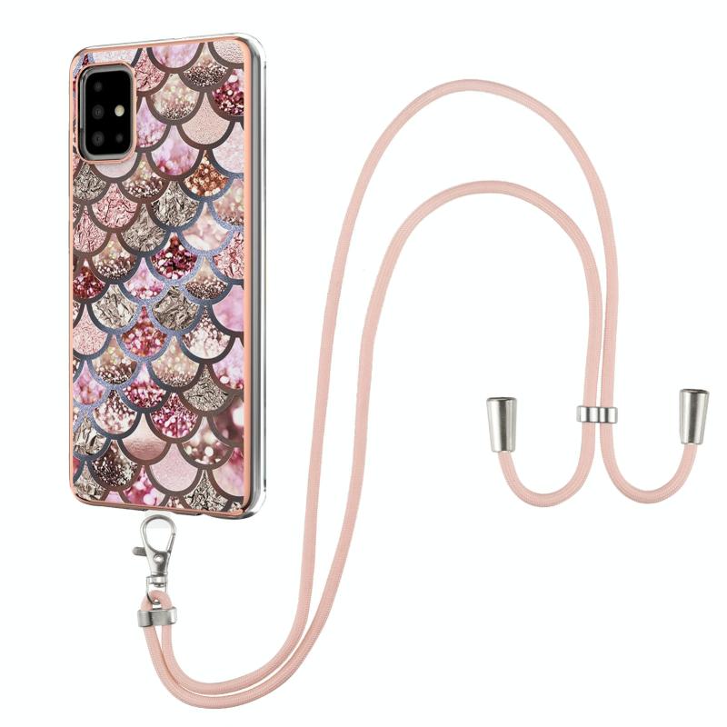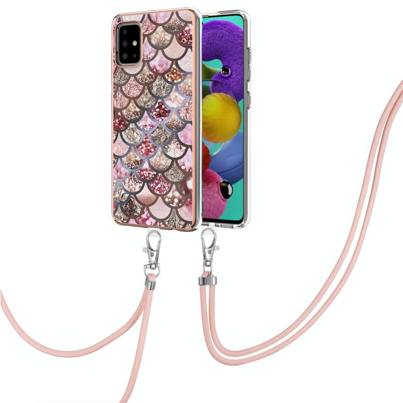 Θήκη για Samsung Galaxy A51 με σχέδιο επιμετάλλωσης IMD, από TPU ανθεκτικό σε κρούσεις με λουρί λαιμού (Μωβ Λουλούδι)