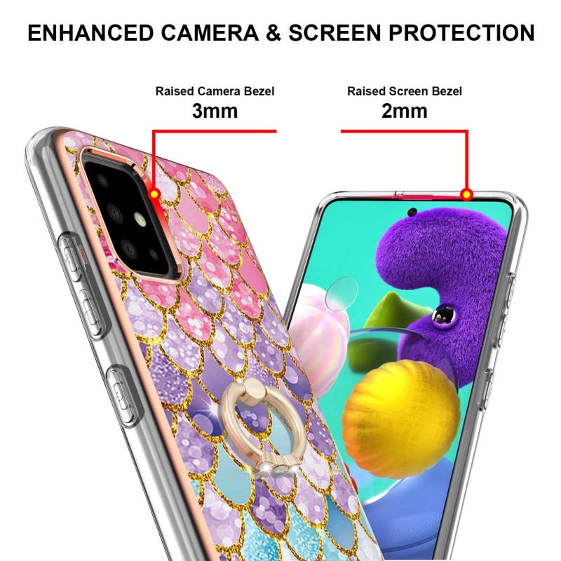 Θήκη για Samsung Galaxy A51 με Επικάλυψη Ηλεκτρολυτικής Επεξεργασίας, Μοτίβο IMD, Αντικραδασμική από TPU με Δαχτυλίδι Στήριξης και Ρητίνες (Πολύχρωμες Λέπια)