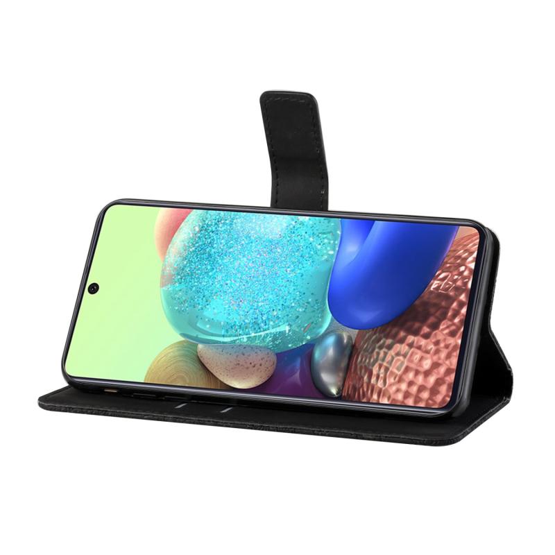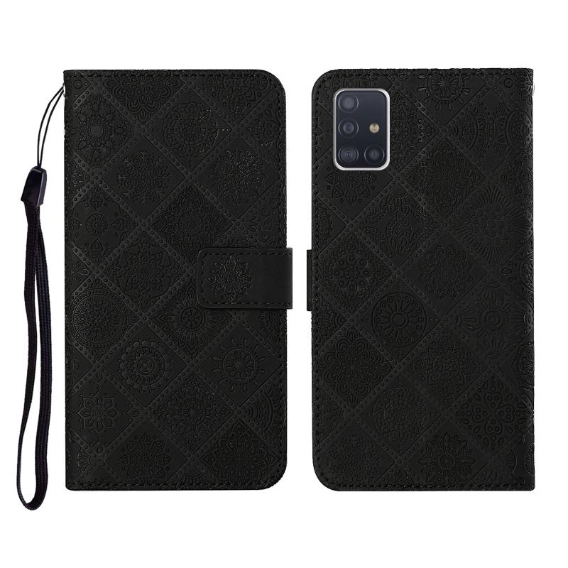 Θήκη Samsung Galaxy A51, Δερμάτινη, Οριζόντια, με ανάγλυφο Εθνικό Στυλ, με Θήκη, Θήκες Καρτών, Πορτοφόλι & Λουρί (Μαύρο)