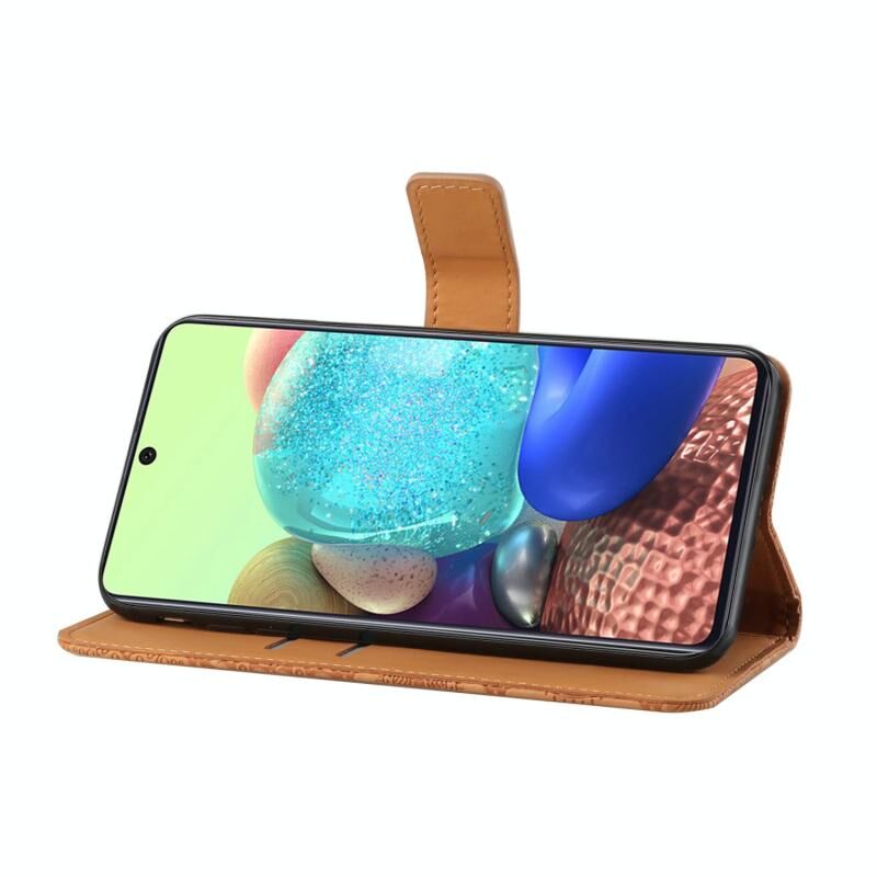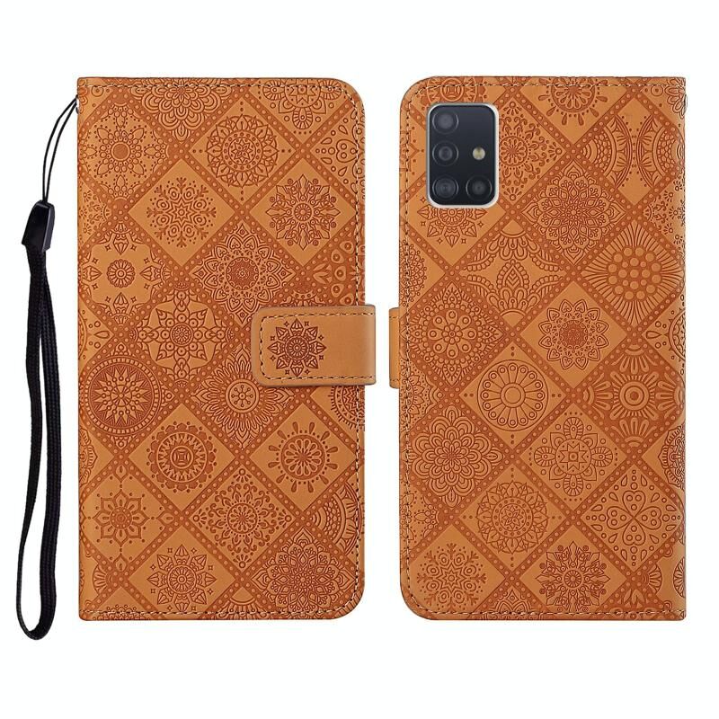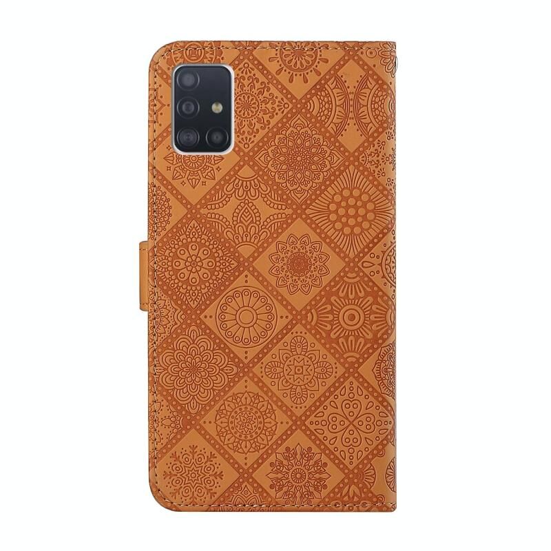 Θήκη Samsung Galaxy A51, Δερμάτινη, Οριζόντια, με ανάγλυφο Εθνικό Στυλ, με Θήκη, Θήκες Καρτών, Πορτοφόλι & Λουρί (Καφέ)