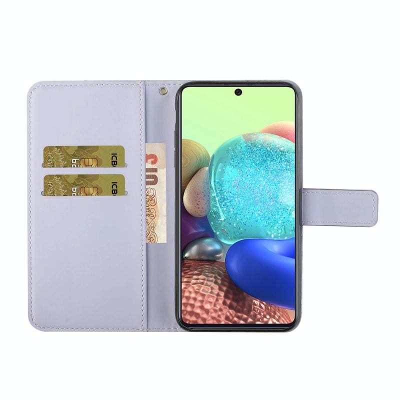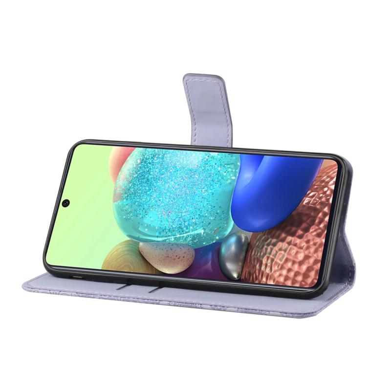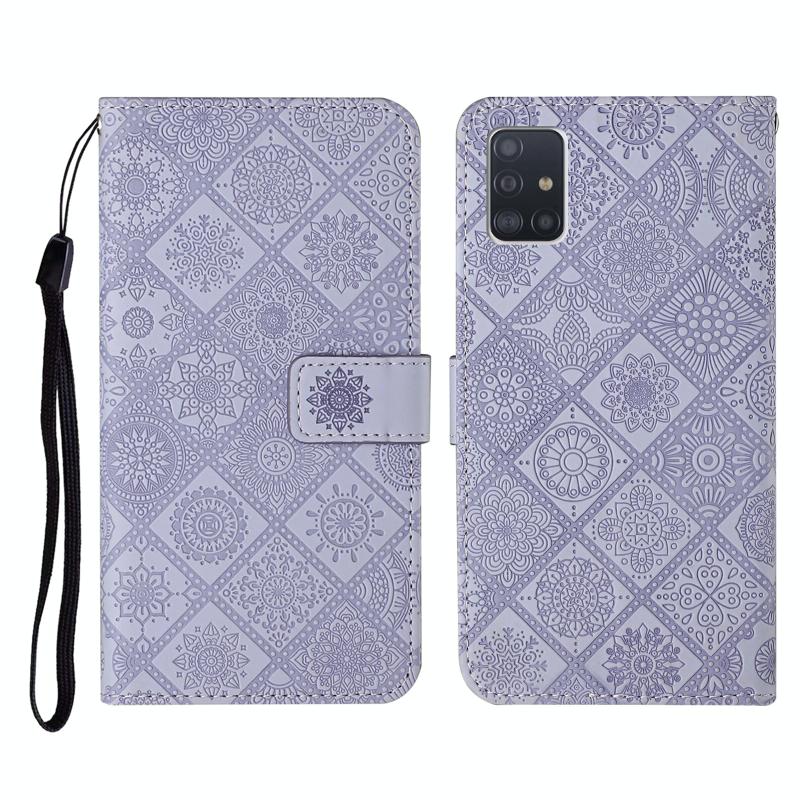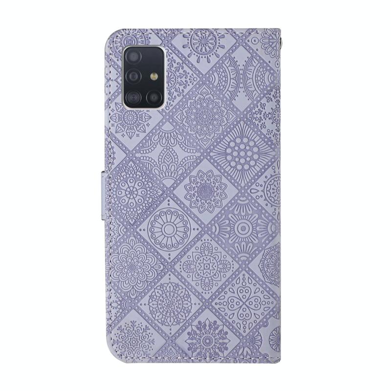 Θήκη Samsung Galaxy A51, Δερμάτινη, Οριζόντια, με ανάγλυφο Εθνικό Στυλ, με Θήκη, Θήκες Καρτών, Πορτοφόλι & Λουρί (Μωβ)