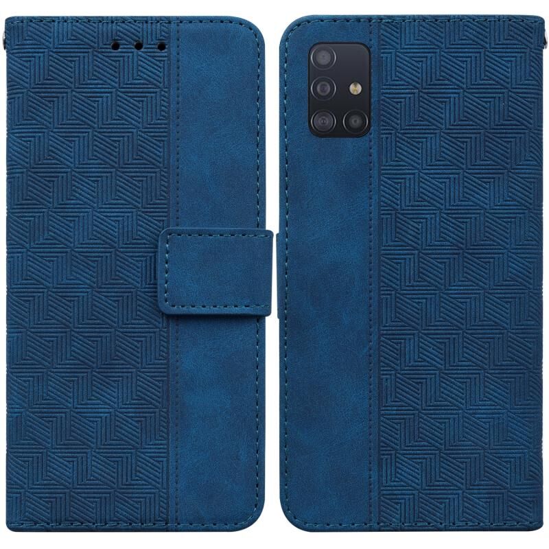 Για Samsung Galaxy A51 Γεωμετρική ανάγλυφη δερμάτινη θήκη τηλεφώνου (μπλε)