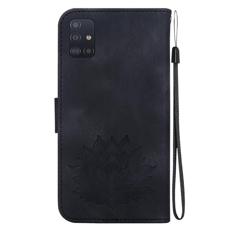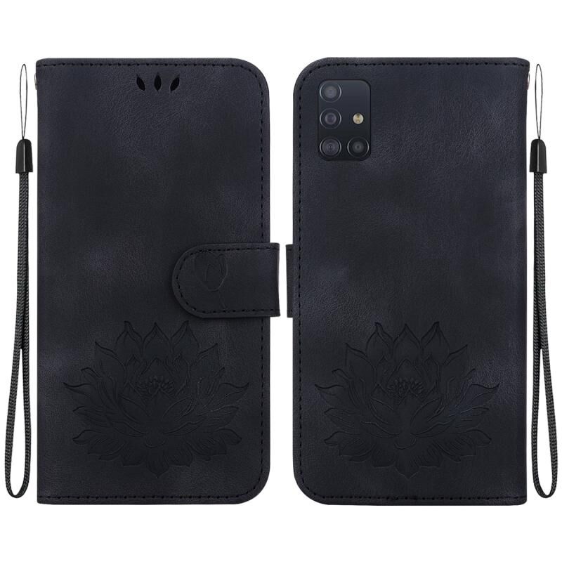 For Samsung Galaxy A51 Lotus Embossed Leather Phone Case(Black)
