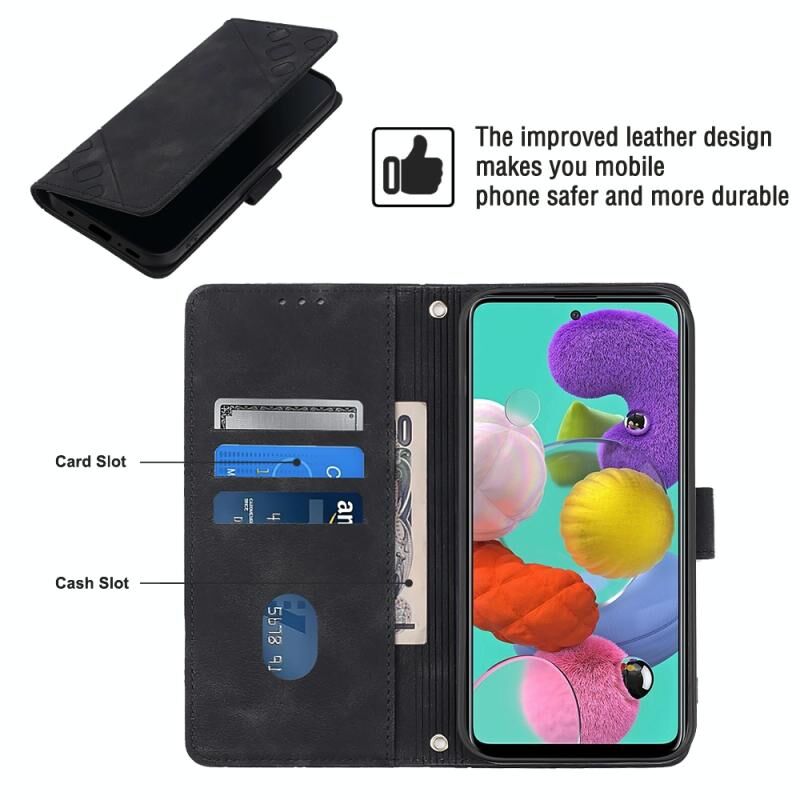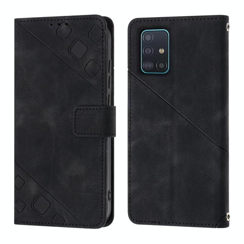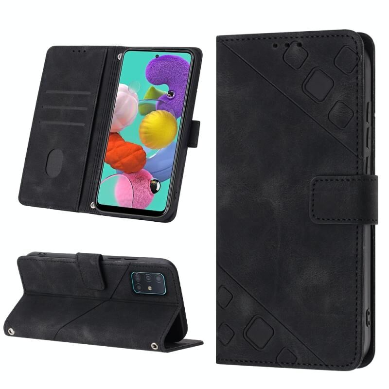Για Samsung Galaxy A51 / M40s Skin-feel ανάγλυφη δερμάτινη θήκη τηλεφώνου (μαύρο)