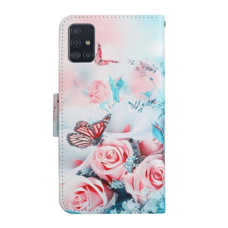 Θήκη Samsung Galaxy A51 από Δέρμα με Οριζόντιο Άνοιγμα, Σχέδιο Ζωγραφικής, με Θήκη & Υποδοχή Κάρτας & Πορτοφόλι (Παιώνια Πεταλούδα)