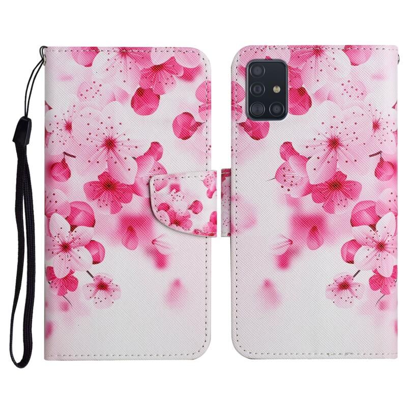 Θήκη Samsung Galaxy A51 από Δέρμα με Οριζόντιο Άνοιγμα, Σχέδιο Ζωγραφικής, με Θήκη & Υποδοχή Κάρτας & Πορτοφόλι (Κόκκινο Λουλούδι)