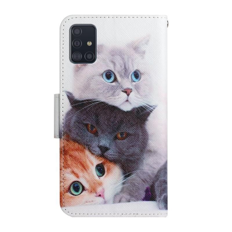 Θήκη Samsung Galaxy A51 από Δέρμα με Οριζόντιο Άνοιγμα, Σχέδιο Ζωγραφικής, με Θήκη & Υποδοχή Κάρτας & Πορτοφόλι (Τρία Γατάκια)