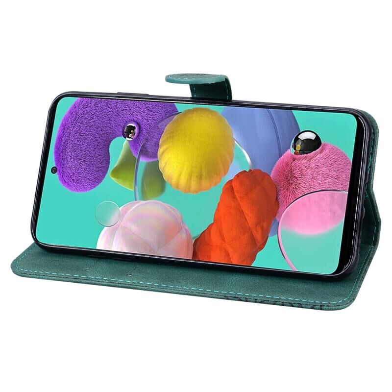 Θήκη Samsung Galaxy A51 Retro, Δερμάτινη, Οριζόντια, με Υφή, με ανάγλυφα σχέδια πεταλούδων, με βάση στήριξης & Θήκες για Κάρτες & Πορτοφόλι (Καφέ)